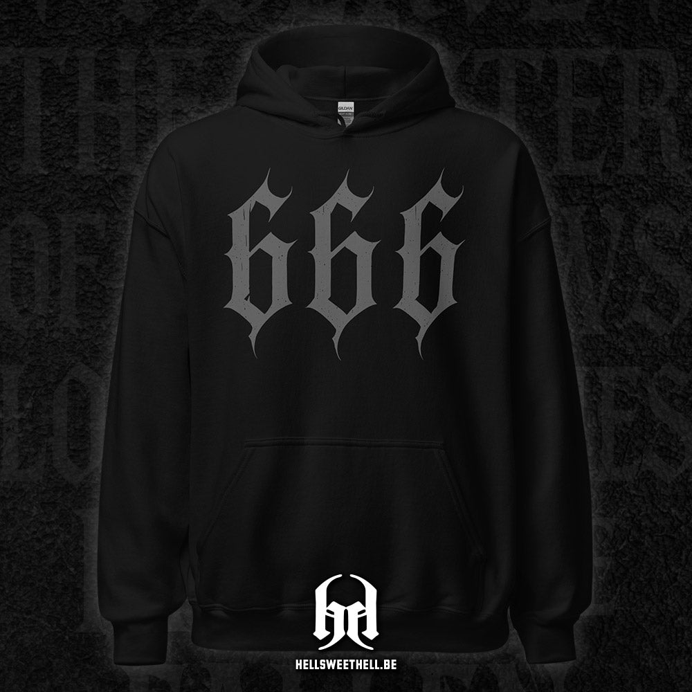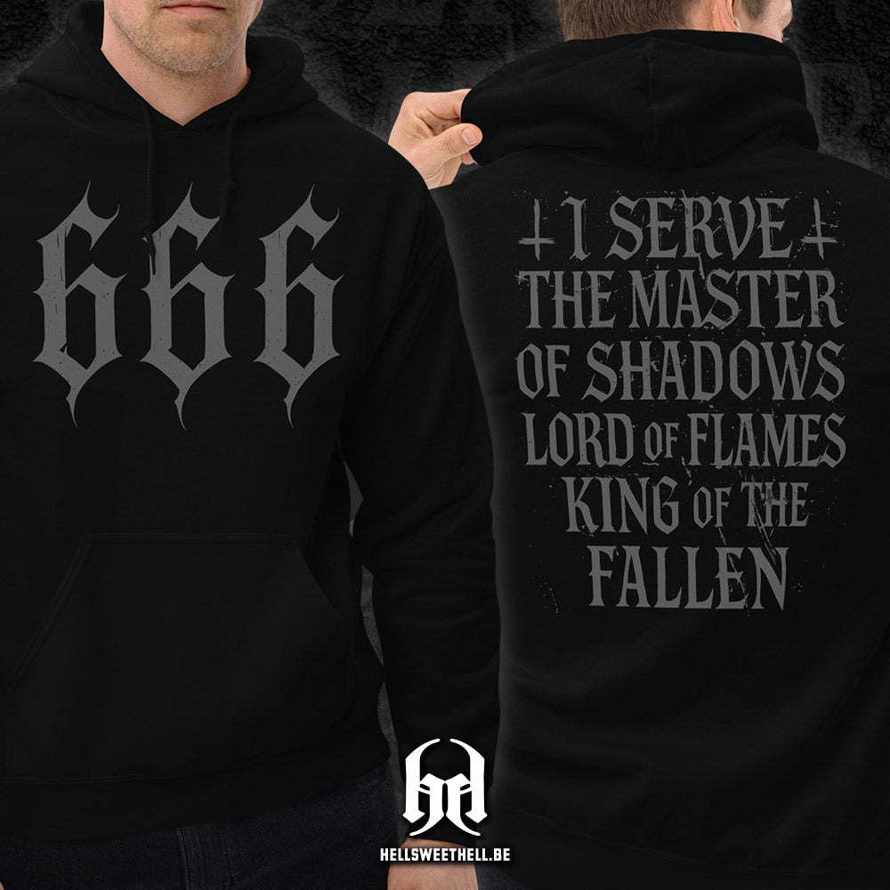 Affrontez les regards et embrassez l’interdit. Ce design "666" ne se contente pas de provoquer : il déclare votre allégeance à l’obscur. Dans le dos, les mots résonnent comme une prière sombre :