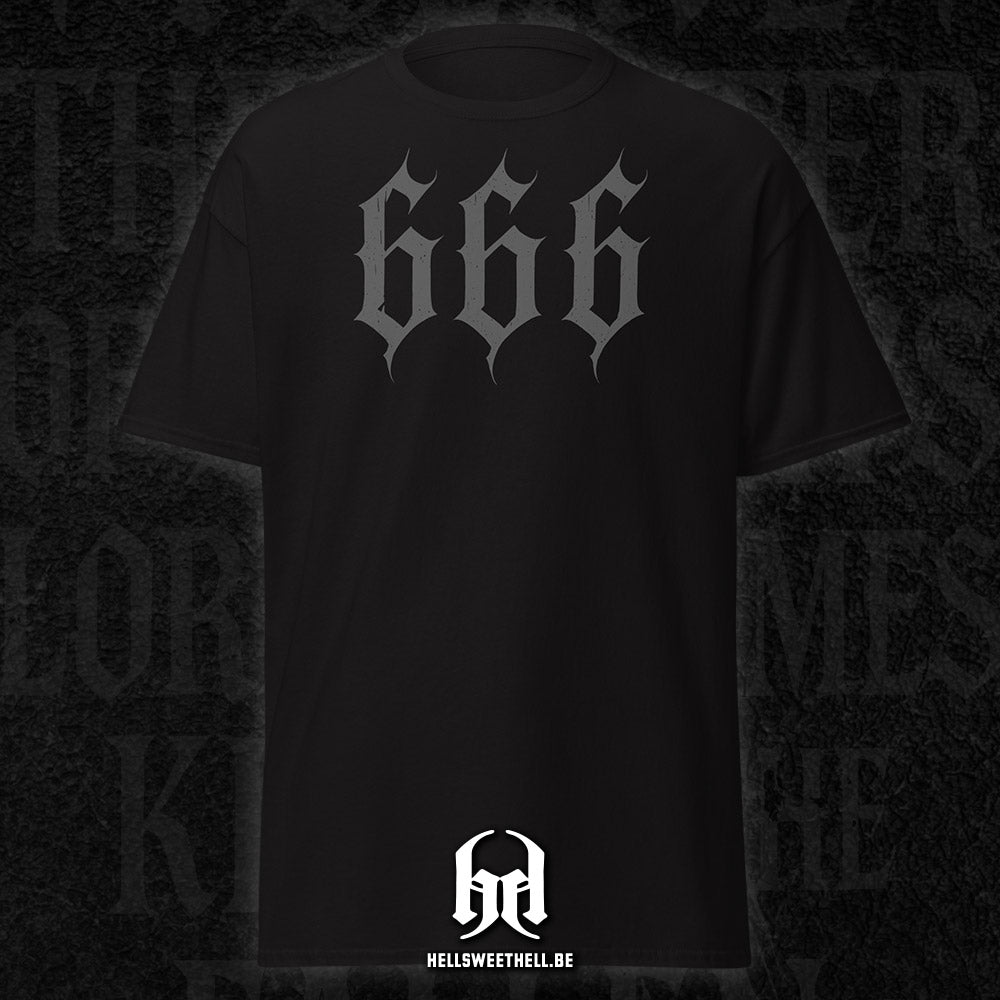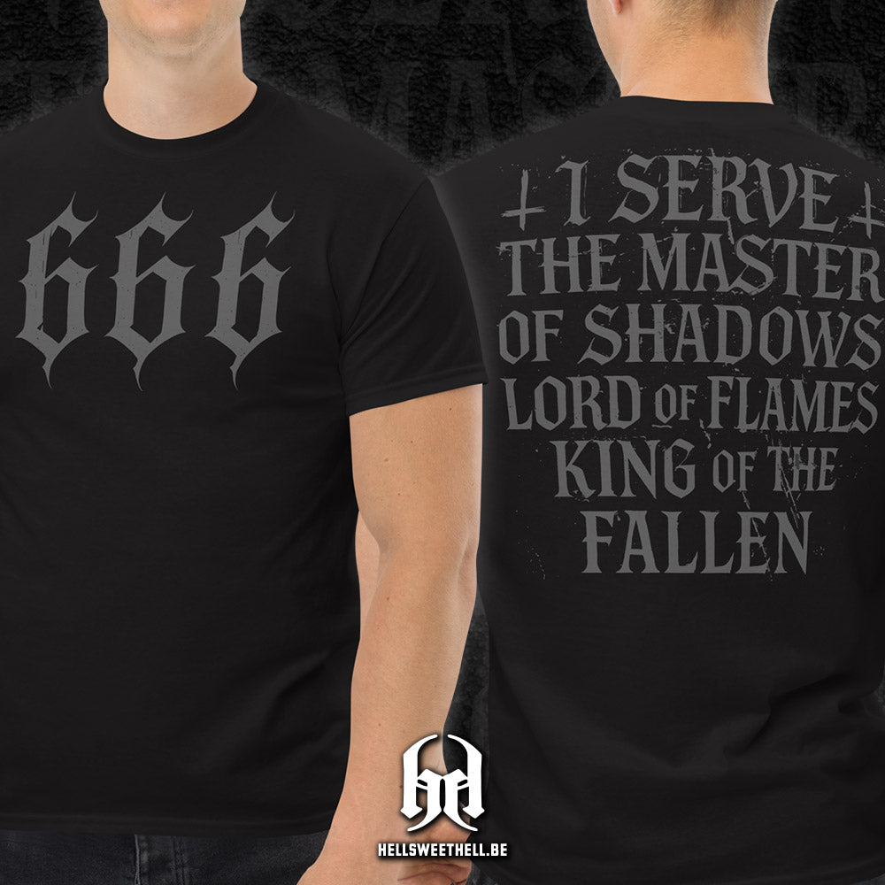 "666" n’est plus un simple chiffre, c’est un cri silencieux porté dans l’ombre. Sur le dos, une déclaration d’obéissance au pouvoir obscur résonne :