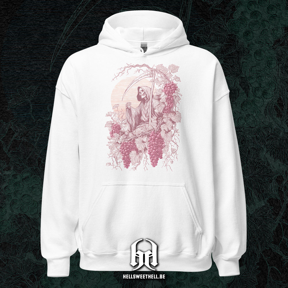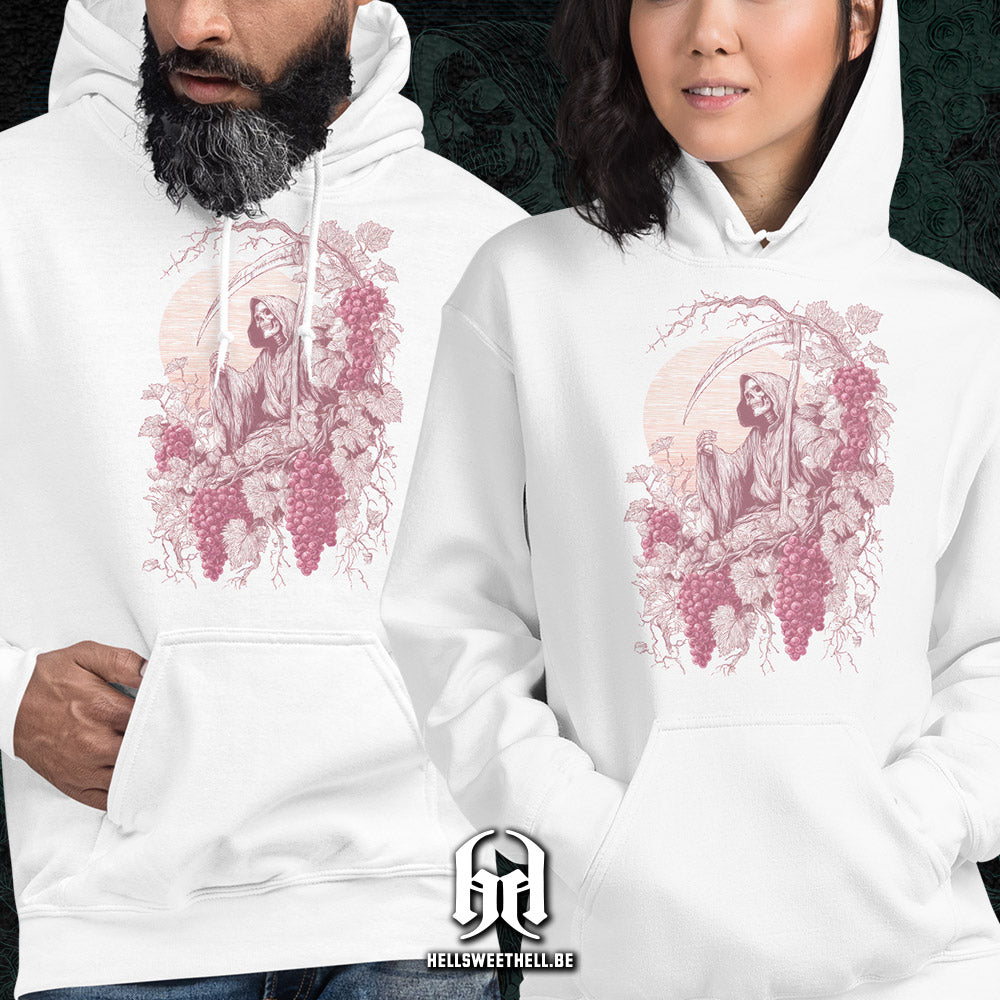 La Mort prend des airs de divinité bachique dans ce visuel où la vigne grimpe autour de sa silhouette encapuchonnée. Une ode visuelle à la décadence, à la célébration du dernier souffle, entre orgie antique et danse macabre. "Bachus Mortem" est fait pour les âmes qui boivent à la coupe de l’obscurité.
