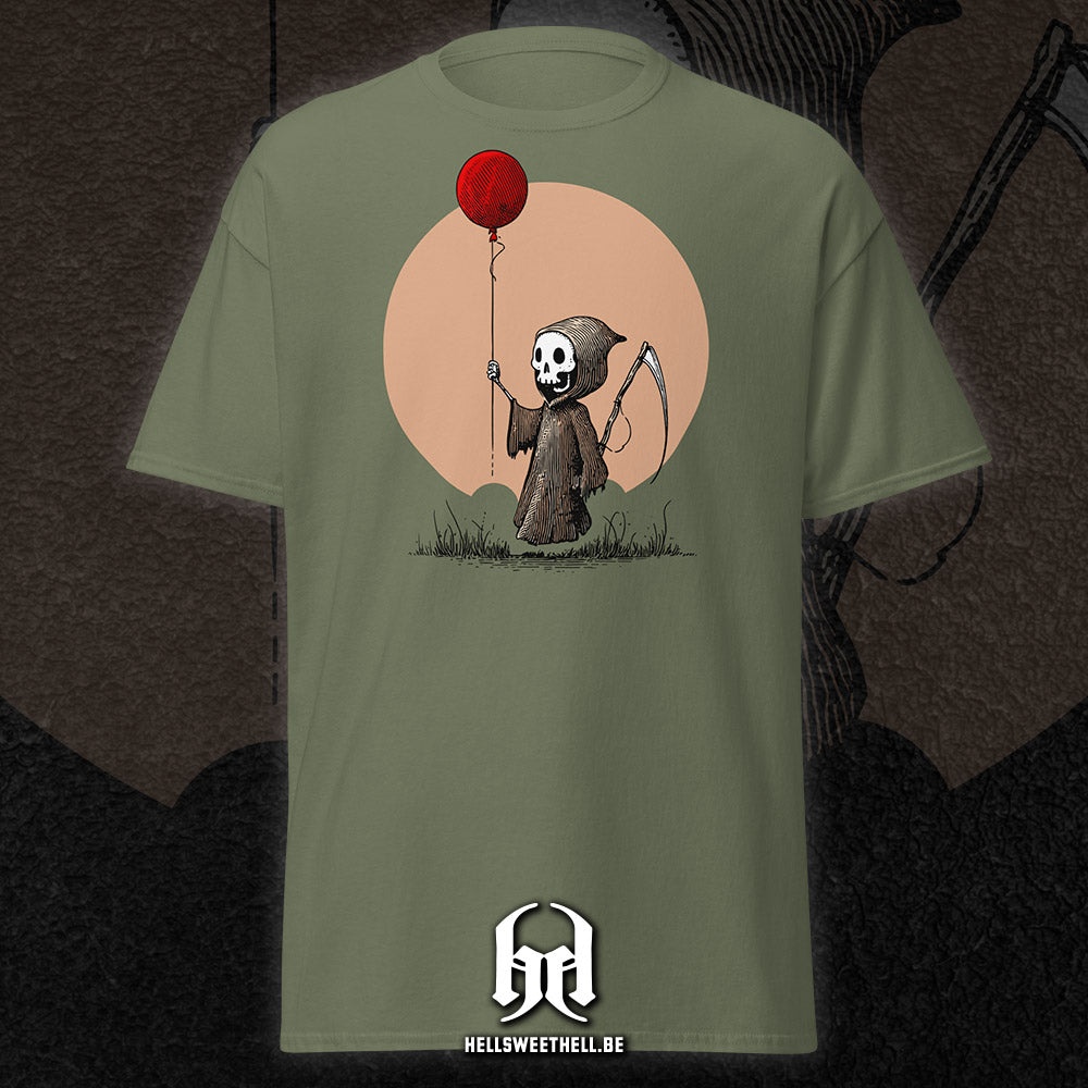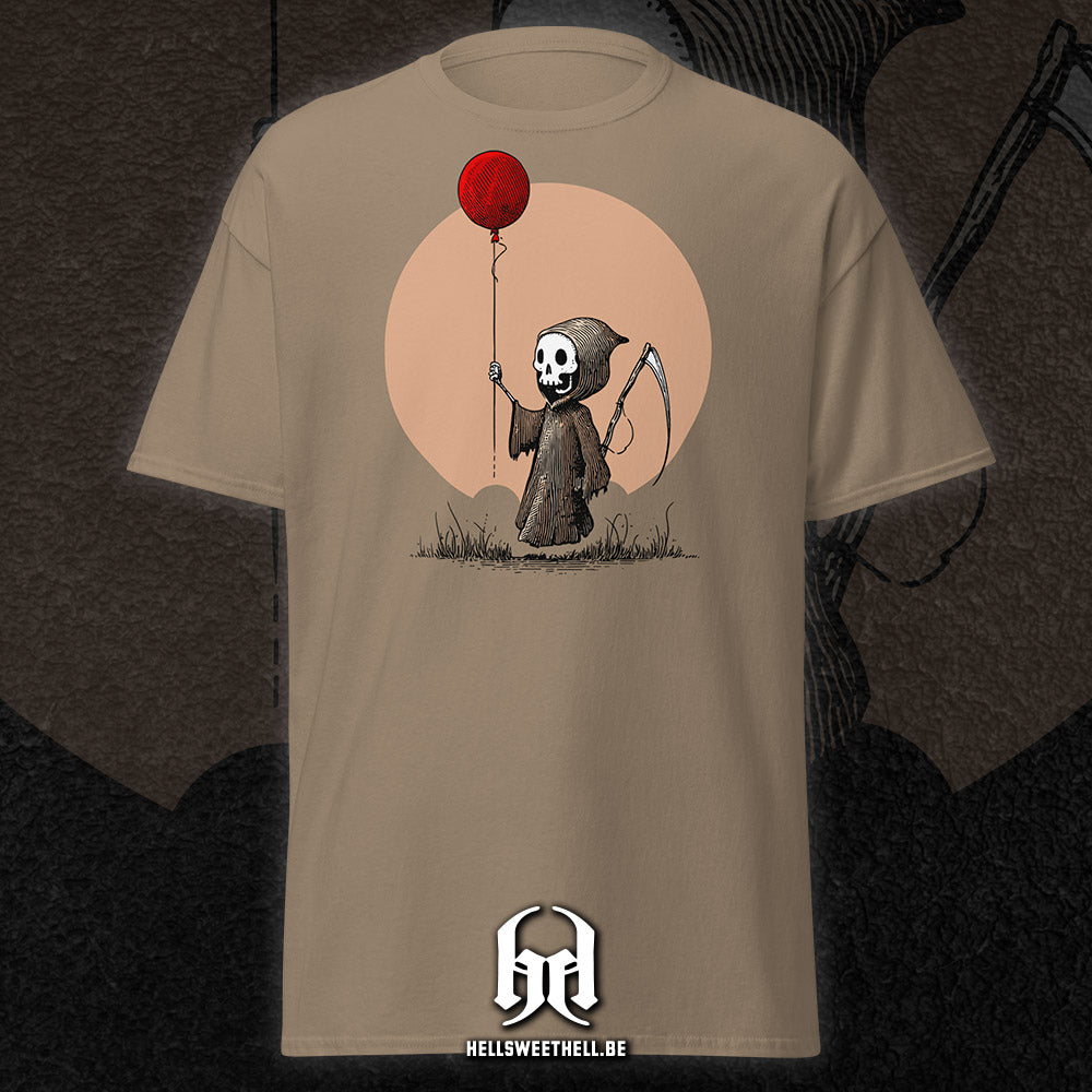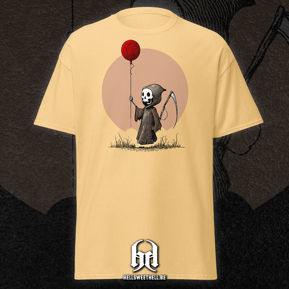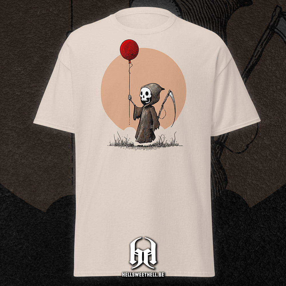 Elle est là, adorable et souriante, tenant sa faux dans une main... et un ballon dans l'autre. Une incarnation inattendue de la faucheuse, qui mêle douceur enfantine et funeste tromperie. Ce design joue avec les codes et renverse les attentes : mignon, oui, mais mortel.