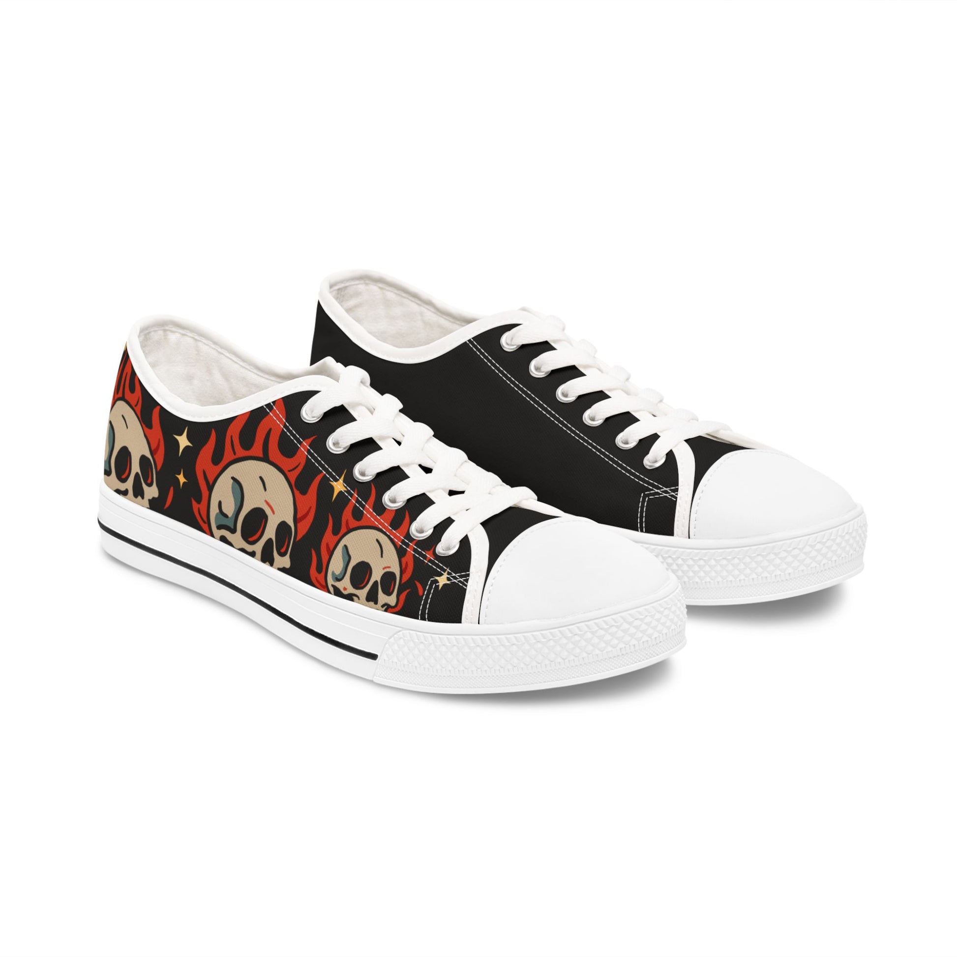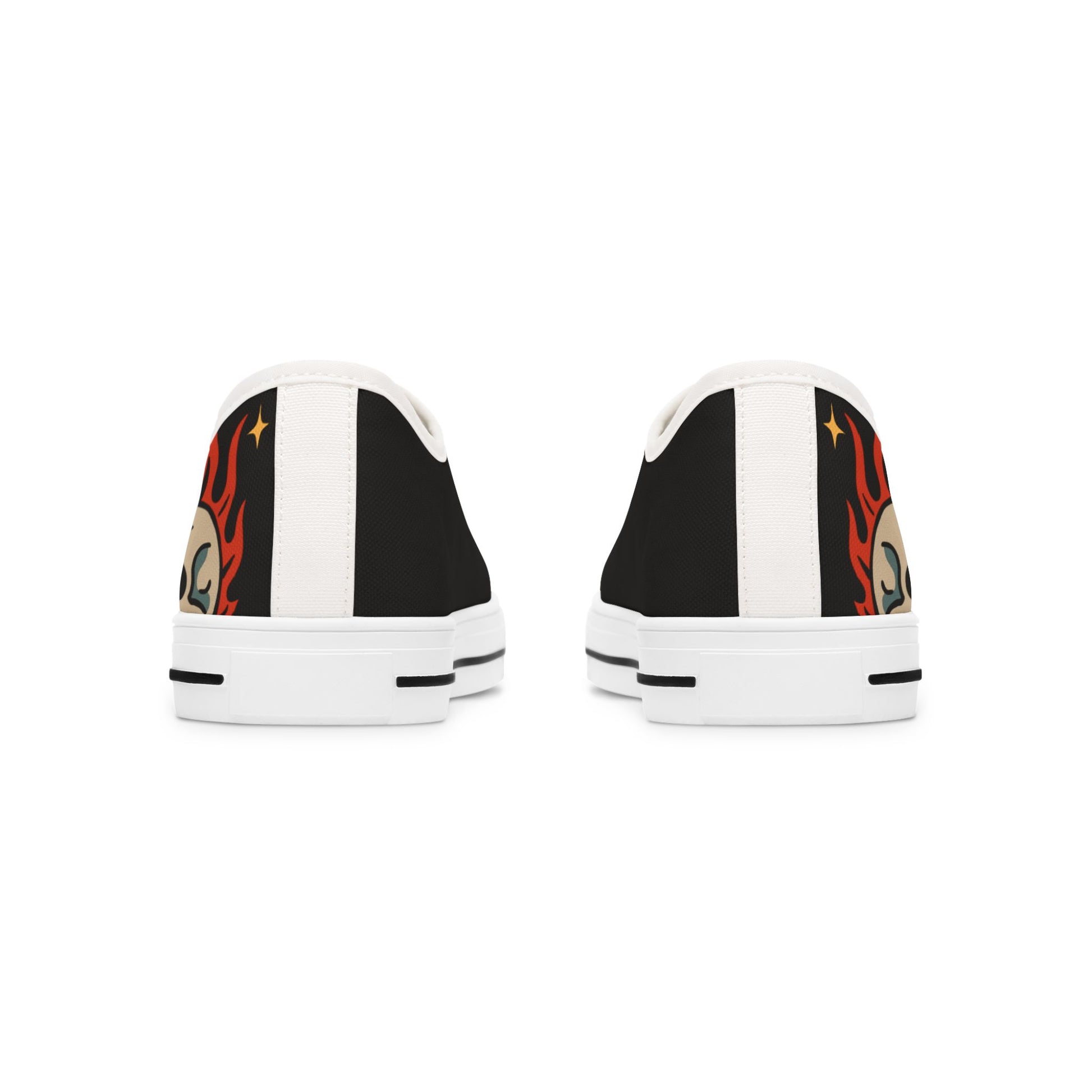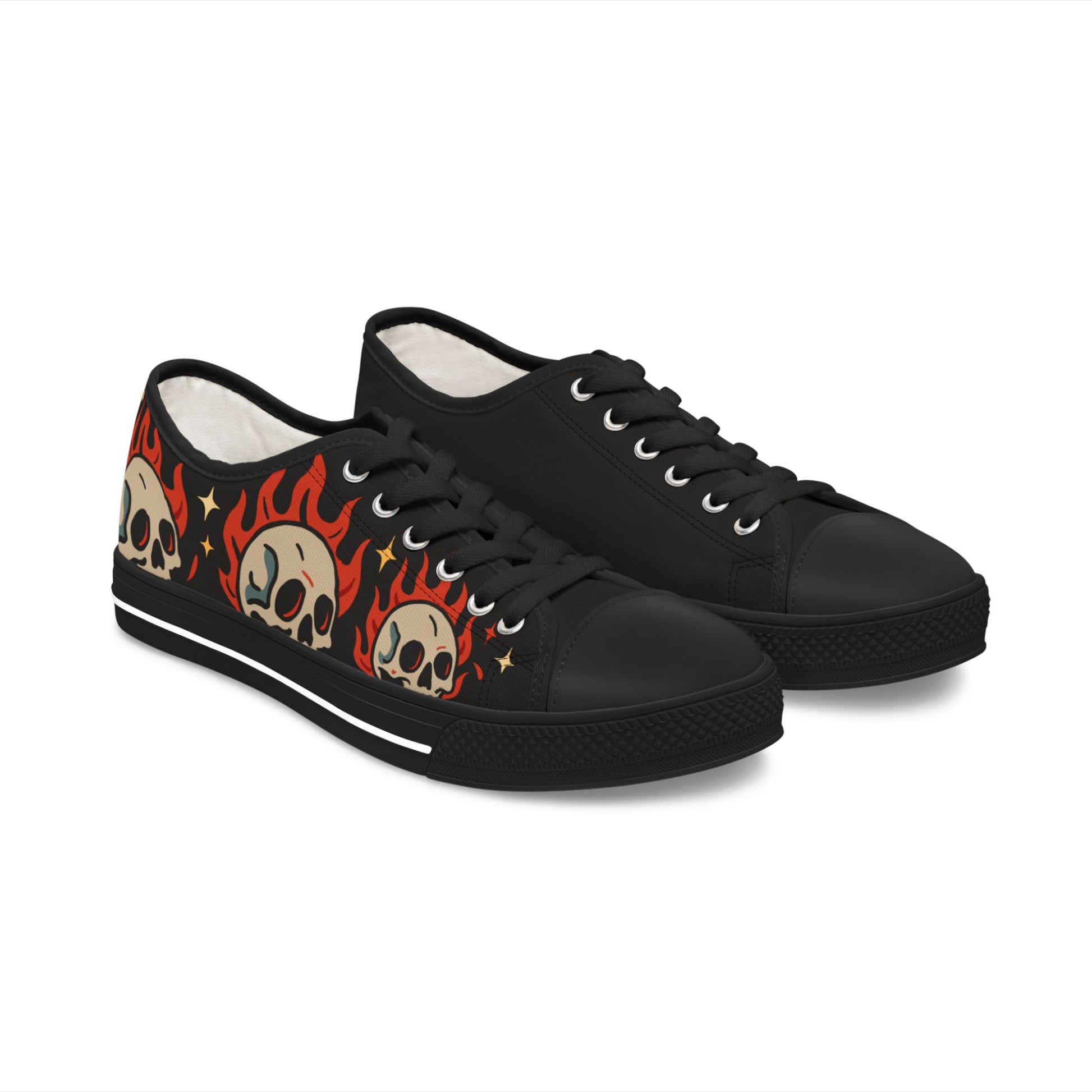 Crâne en feu Oldschool - Baskets basses FEMME (noir ou blanc)