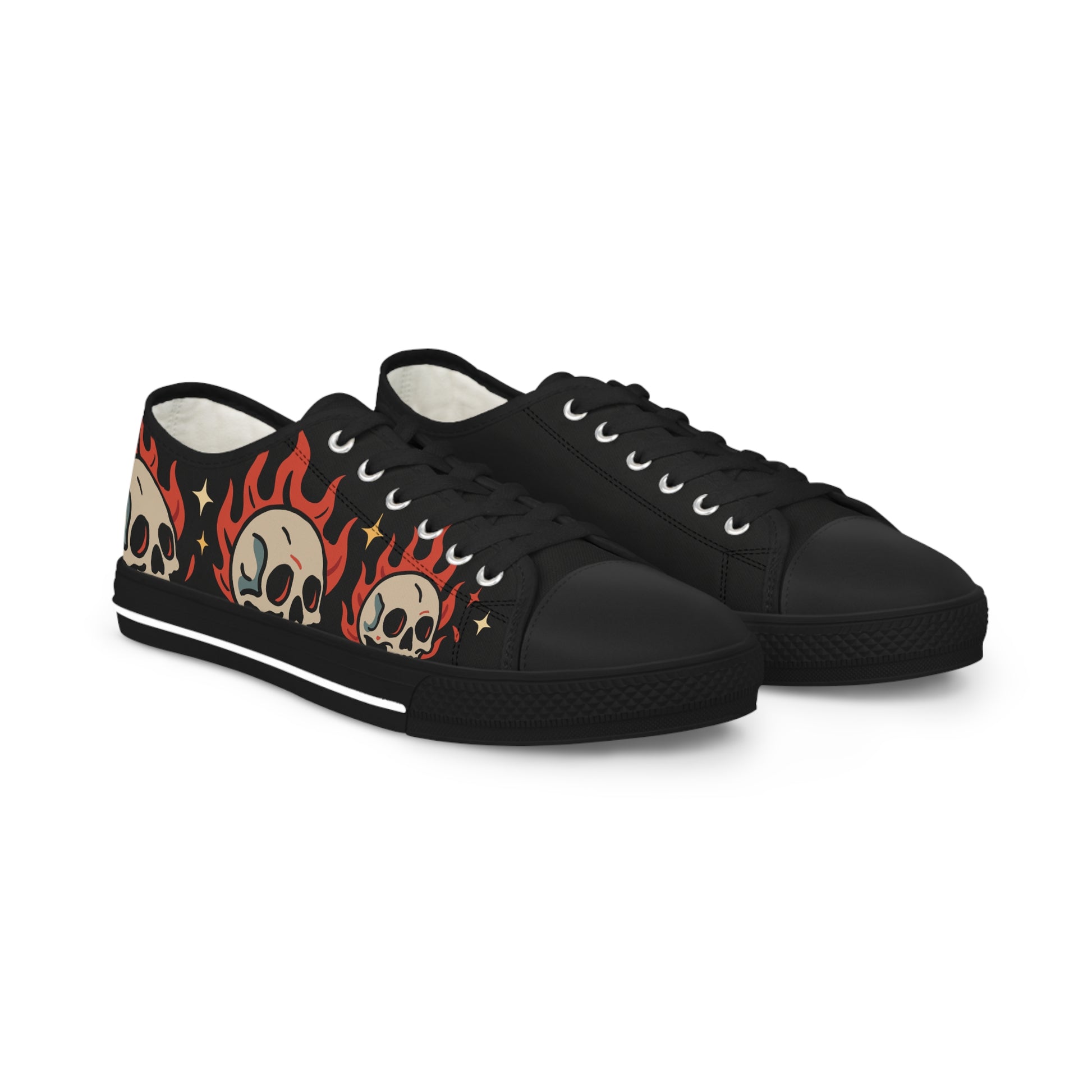 Crâne en feu Oldschool - Baskets basses HOMME (noir ou blanc)
