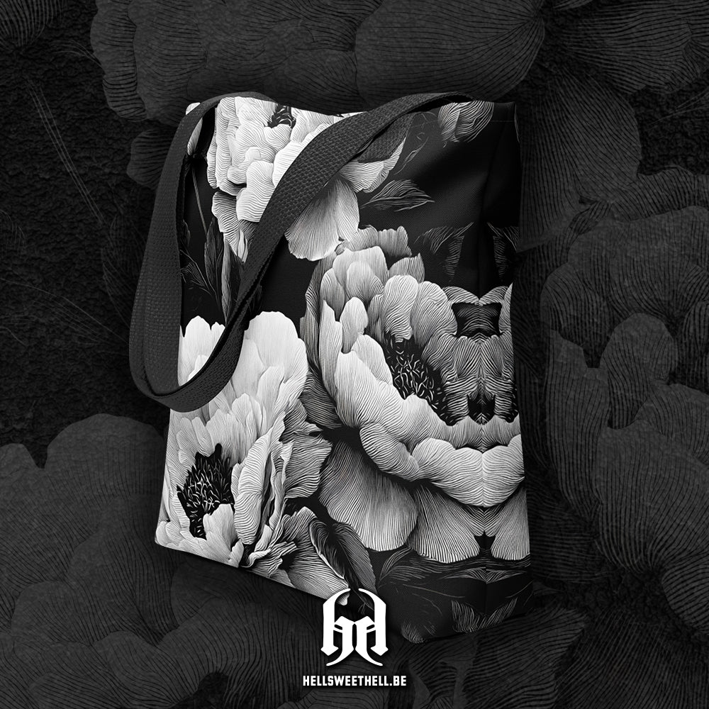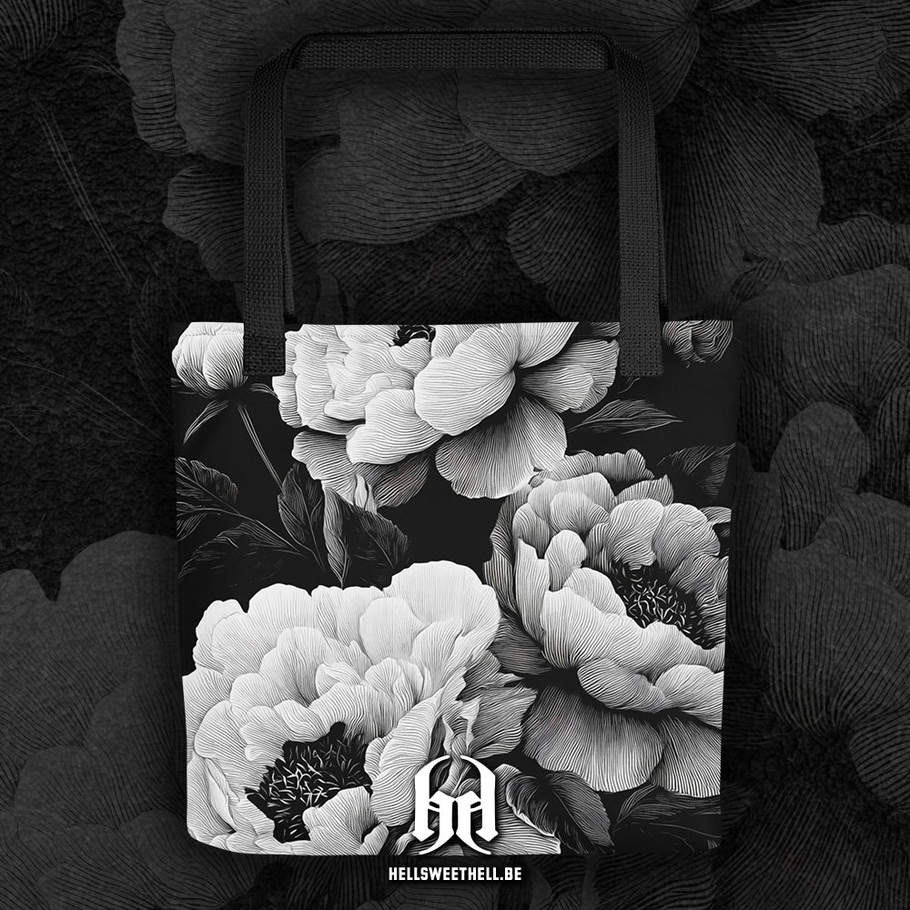 Un bouquet figé dans la nuit, à portée de main. Ce tote bag "Dark Flowers" capture la beauté silencieuse d’une nature pétrifiée, dans un contraste noir et blanc d’une intensité rare. Chaque fleur, chaque ligne, respire la délicatesse et la mélancolie. Parfait pour les âmes sensibles au charme discret de l’obscur, ce sac est un hommage graphique à l’éphémère devenu éternel.