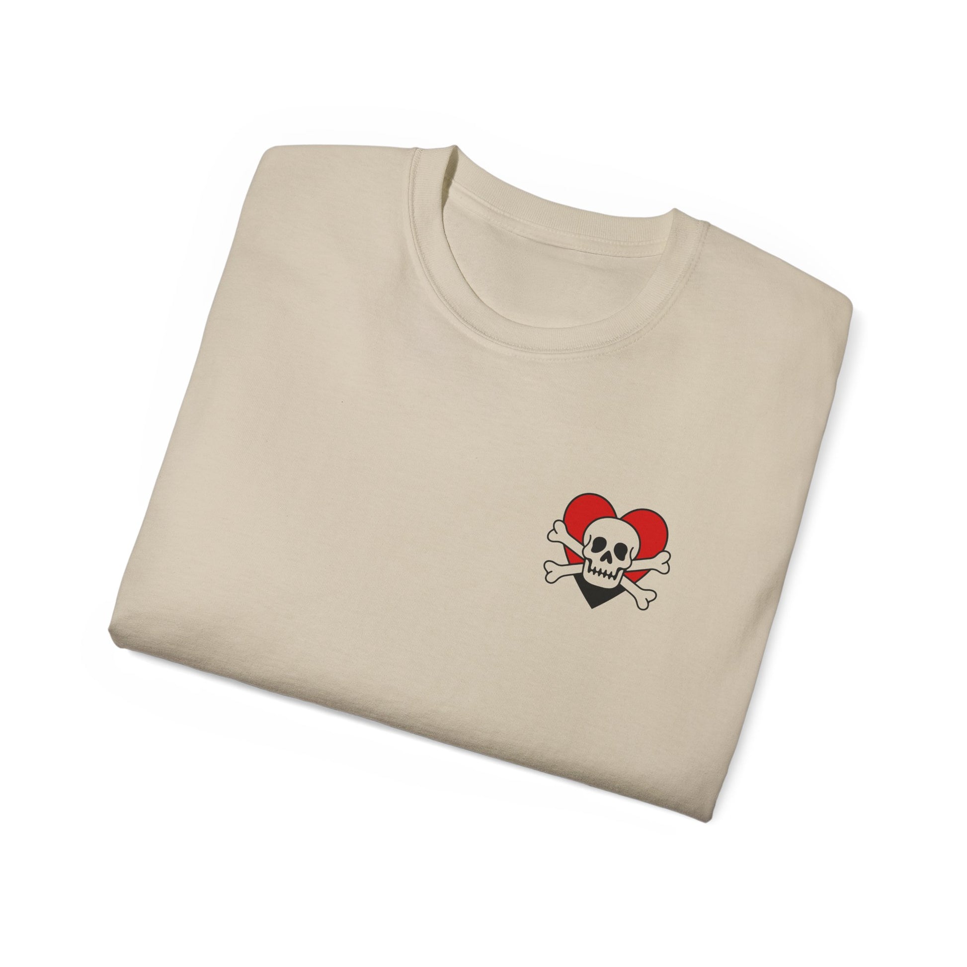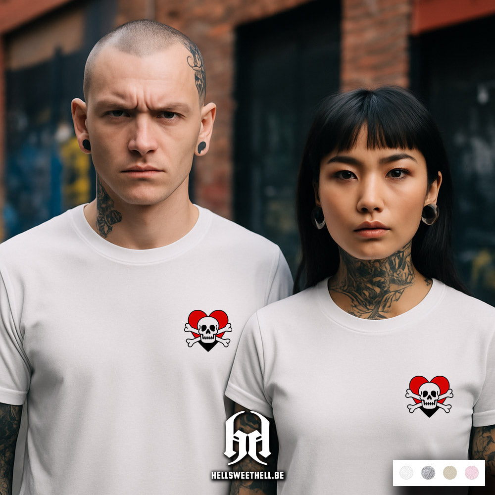 Un cœur rouge sang, un crâne menaçant, et deux os croisés : Deadly Love fusionne passion et damnation dans un visuel old school percutant. Un symbole pour celles et ceux qui aiment jusqu’à la mort... ou qui s’en sont remis.