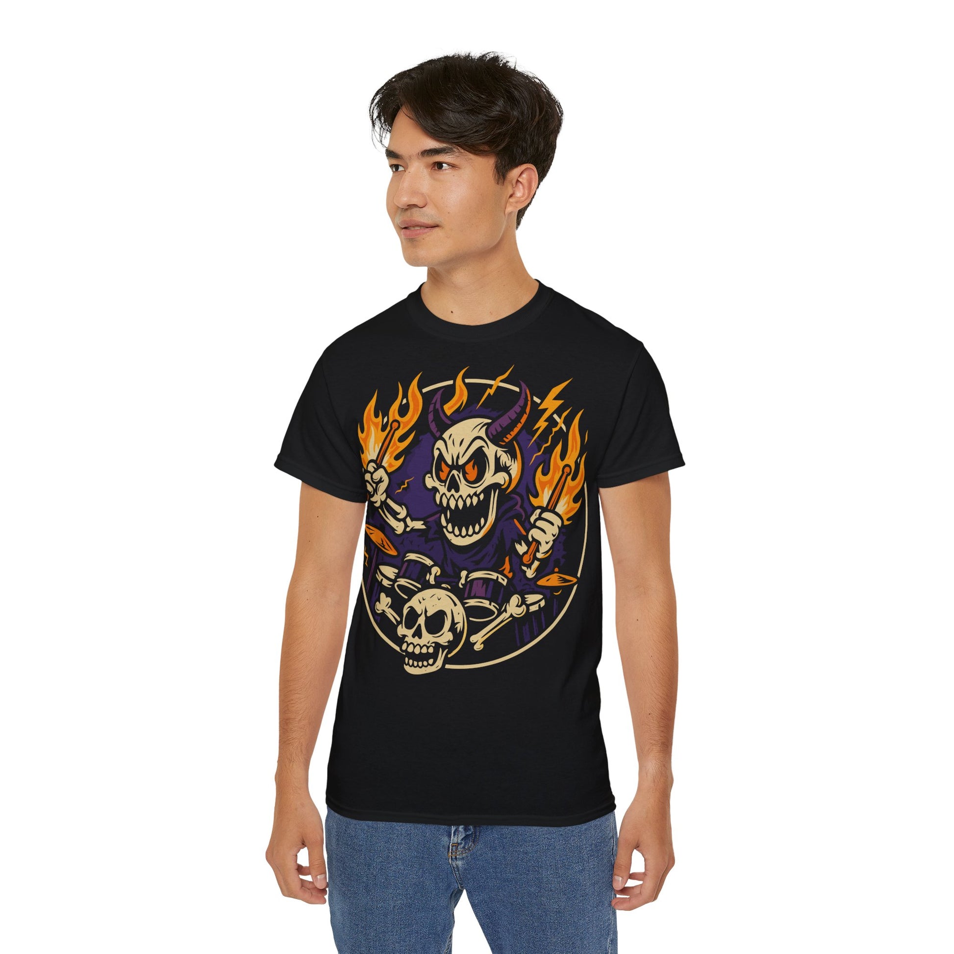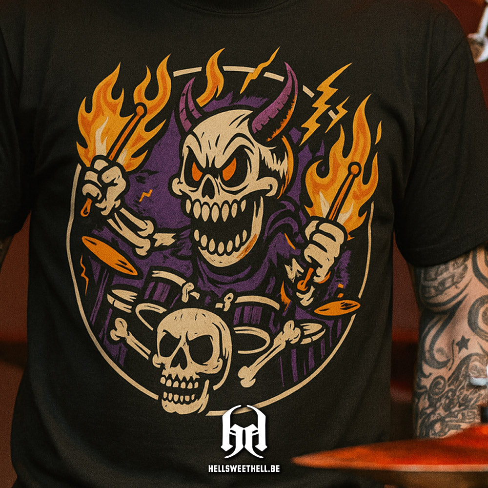 Ce batteur n’a qu’une mission : faire exploser les tympans et brûler les planches. Avec ses baguettes enflammées et son regard possédé, ce squelette démoniaque incarne la rage du métal et l'énergie brute du punk. Un design ultra badass pour les fans de musique qui cognent fort.