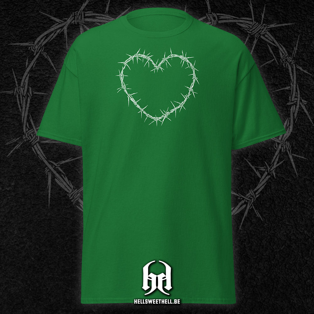 Minimaliste mais percutant, ce design incarne un contraste puissant entre la délicatesse du cœur et la brutalité du fil barbelé. Un symbole de passion, de douleur et de résilience, parfait pour ceux qui portent l’amour comme une arme ou une cicatrice.