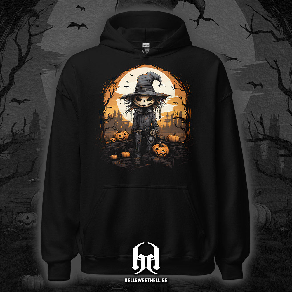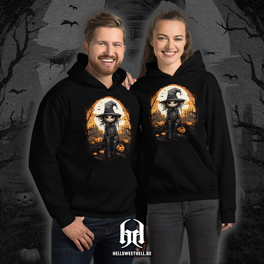 Mettez-vous dans l'esprit d'Halloween avec notre sweat à capuche épouvantail, un incontournable pour les festivités d'octobre. Fabriqué en coton doux de qualité, ce hoodie comporte une illustration détaillée d'un épouvantail effrayant et fun, parfait pour compléter votre tenue d'Halloween.