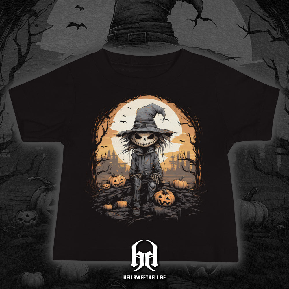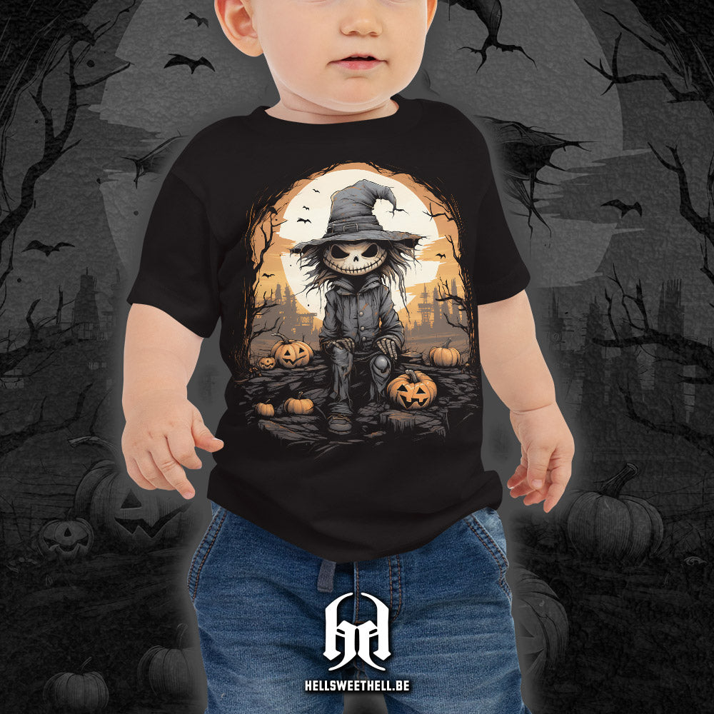Mettez-vous dans l'esprit d'Halloween avec notre textile épouvantail, un incontournable pour les festivités d'octobre. Fabriqué en coton doux de qualité, ce t-shirt pour bébés et enfants comporte une illustration détaillée d'un épouvantail effrayant et fun, parfait pour compléter votre tenue d'Halloween.