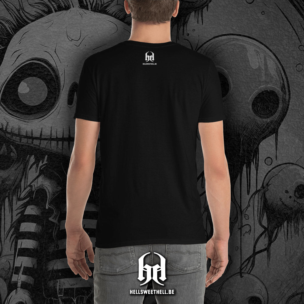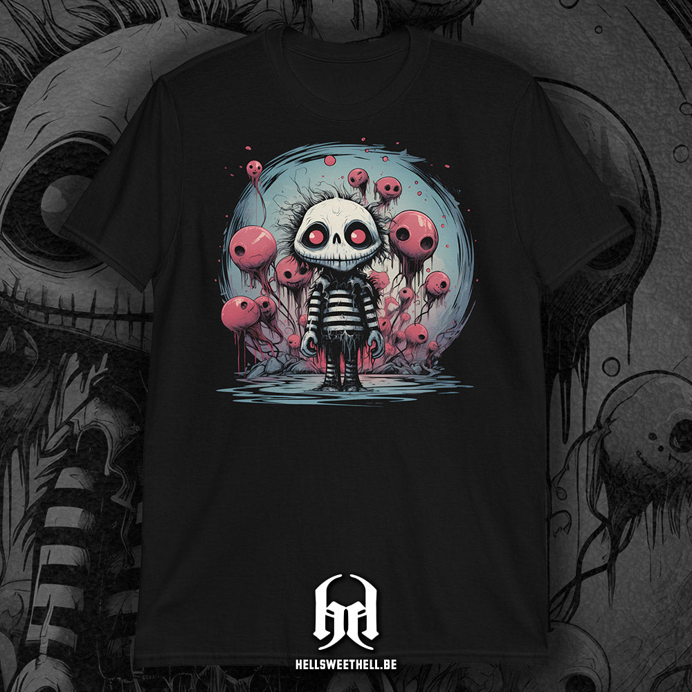 Plongez dans le monde singulier avec notre textile au design captivant. Ce t-shirt unique ajoute une touche sombre et artistique à votre style