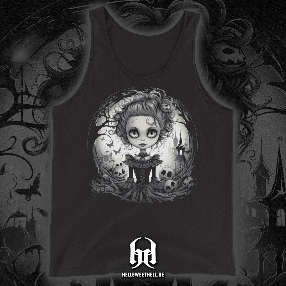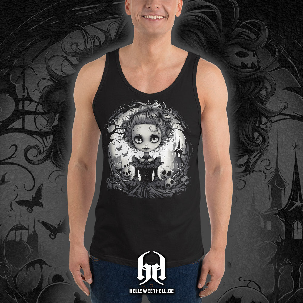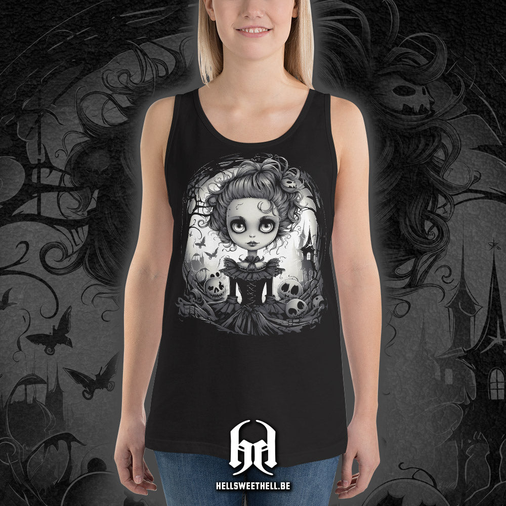 Plongez dans un univers fascinant avec notre débardeur "Jeune Fille aux Grands Yeux" spécialement conçu pour Halloween. Cette création artistique saisissante capture l'esthétique unique de Burton, mêlant le macabre au merveilleux. Portez cette pièce emblématique pour incarner la magie ténébreuse de la saison d'Halloween avec élégance et style.