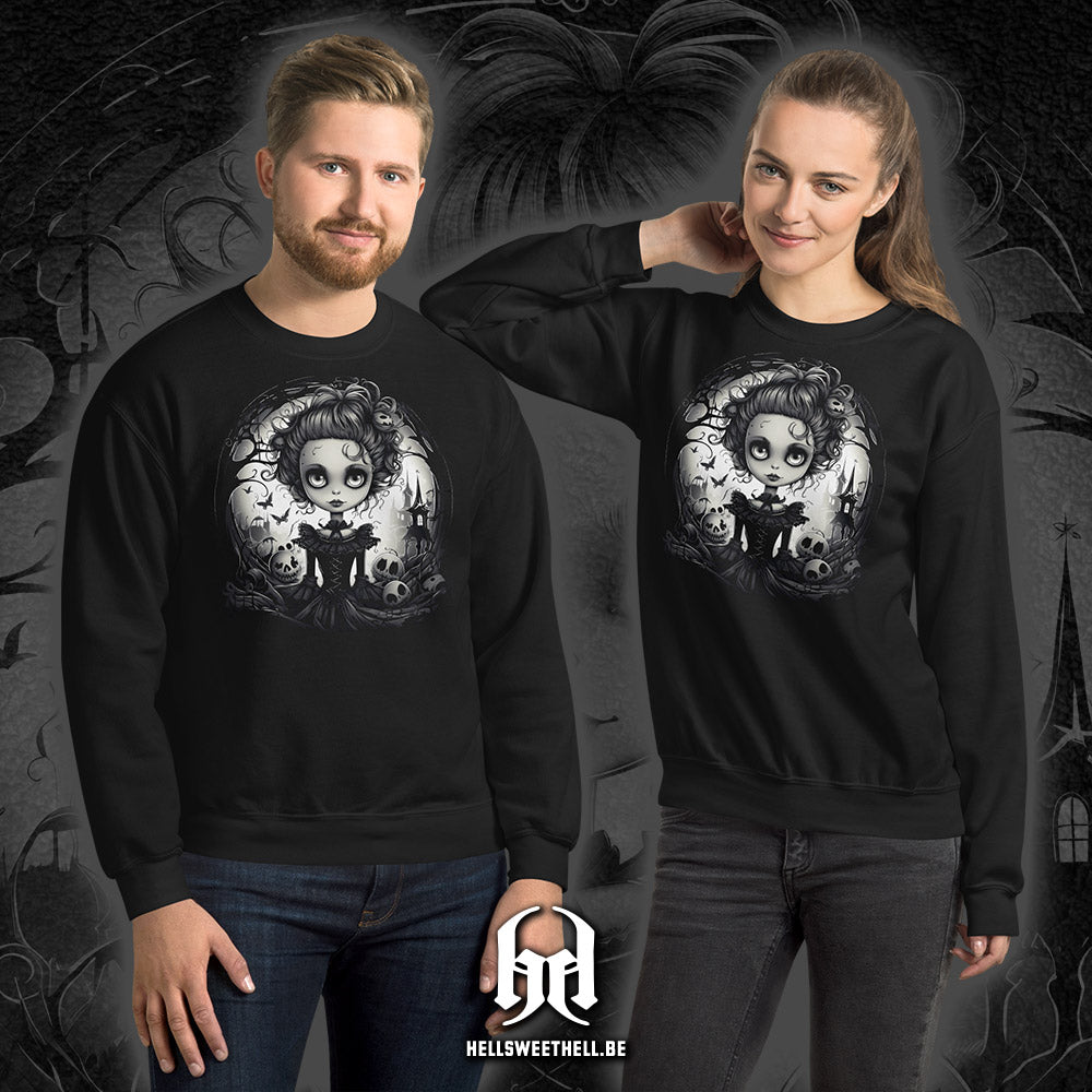 Plongez dans un univers fascinant avec notre pull "Jeune Fille aux Grands Yeux" spécialement conçu pour Halloween. Cette création artistique saisissante capture l'esthétique unique de Burton, mêlant le macabre au merveilleux. Portez cette pièce emblématique pour incarner la magie ténébreuse de la saison d'Halloween avec élégance et style.