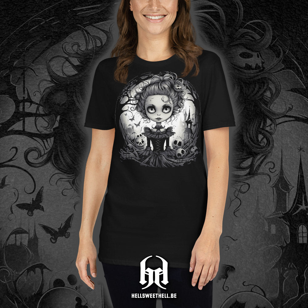 Plongez dans un univers fascinant avec notre T-shirt "Jeune Fille aux Grands Yeux" spécialement conçu pour Halloween. Cette création artistique saisissante capture l'esthétique unique de Burton, mêlant le macabre au merveilleux. Portez cette pièce emblématique pour incarner la magie ténébreuse de la saison d'Halloween avec élégance et style.