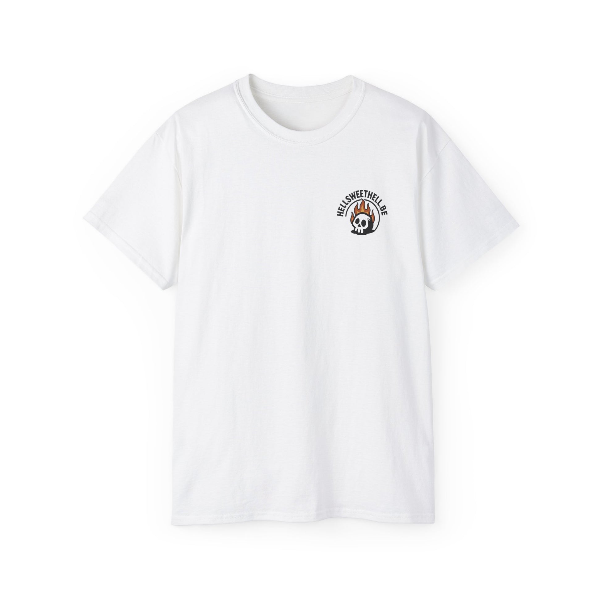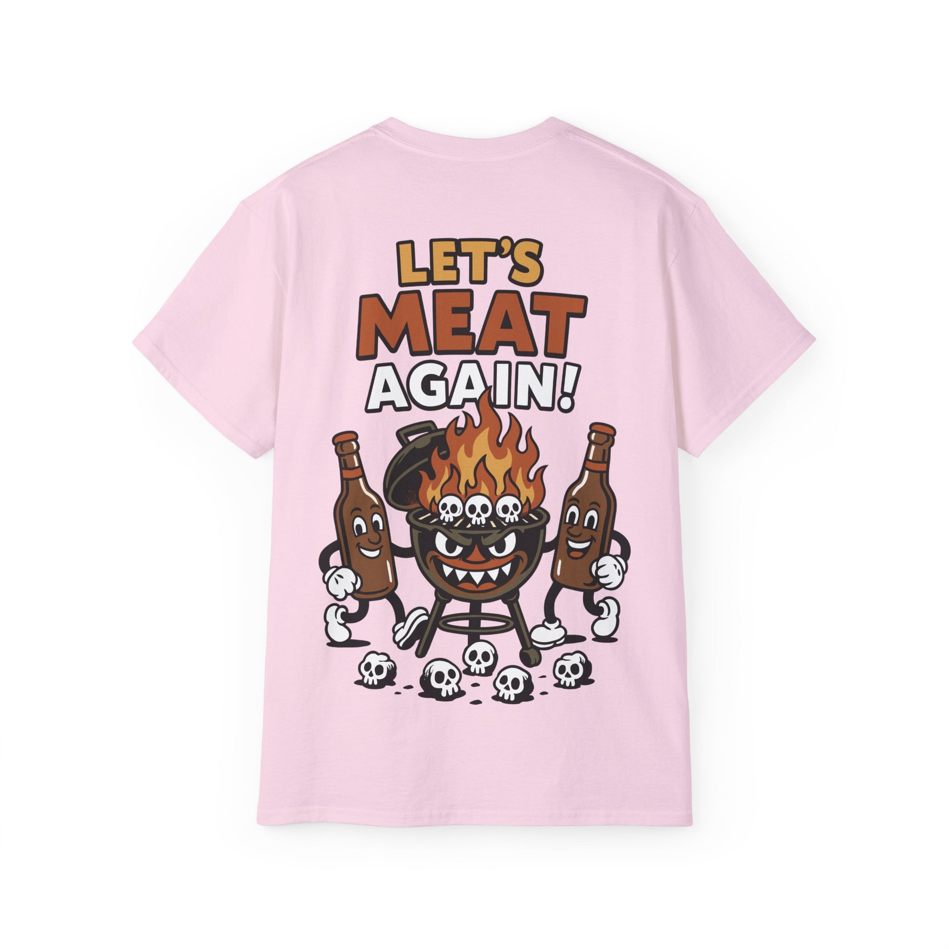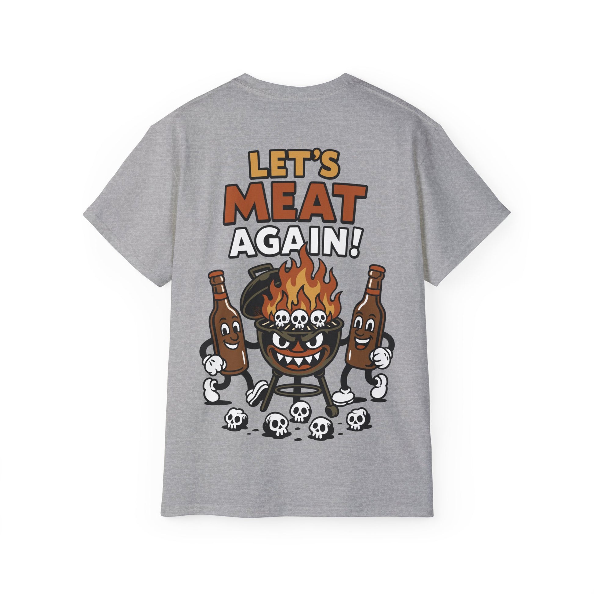Ambiance BBQ dark et humour noir : un barbecue démoniaque, des bières possédées, et des crânes qui grillent joyeusement. Parfait pour ceux qui aiment les grillades avec une touche d’esprit tordu. Un visuel cartoon vintage, imprimé sur coton premium, coupe unisexe.