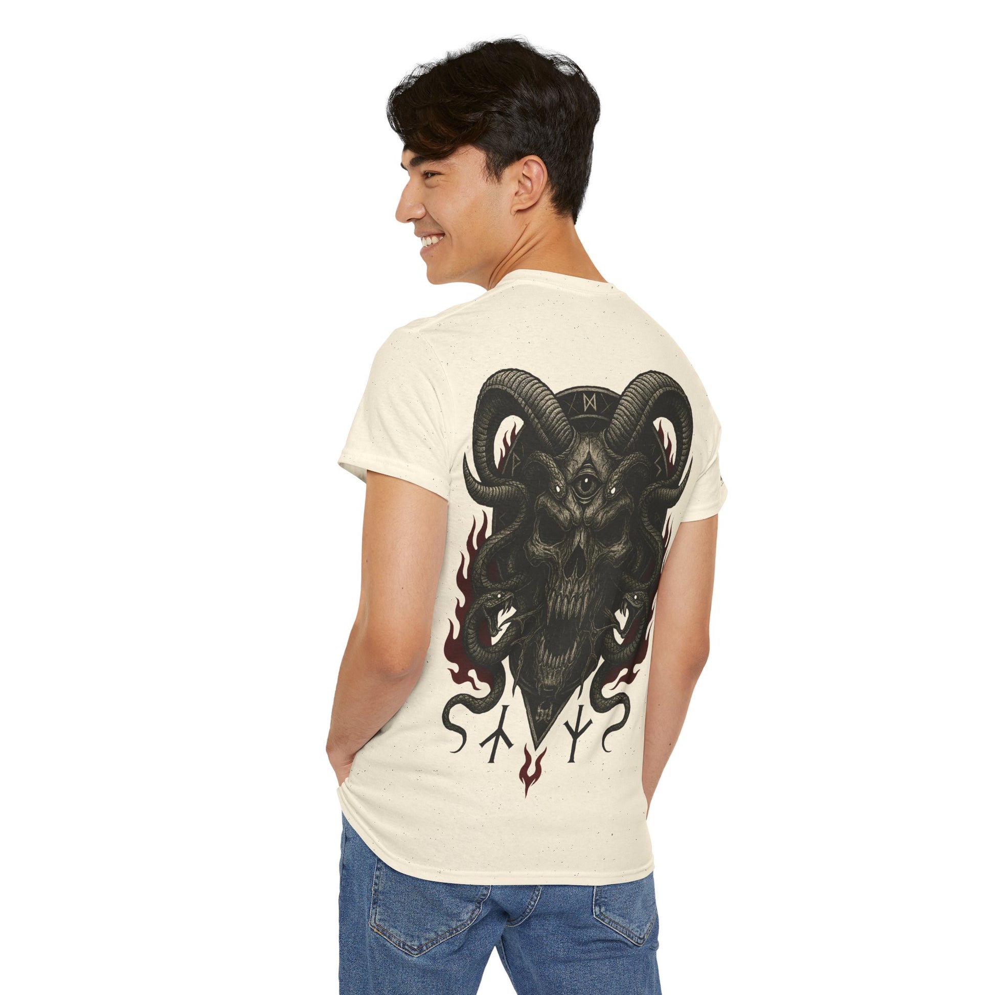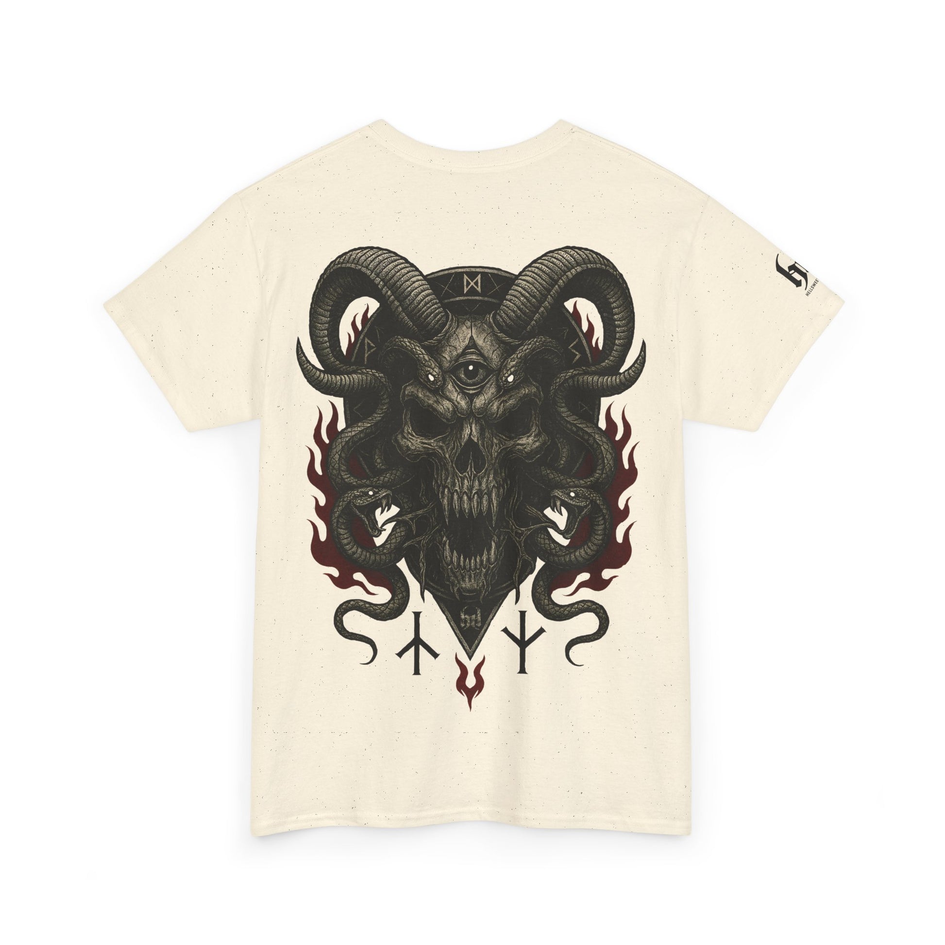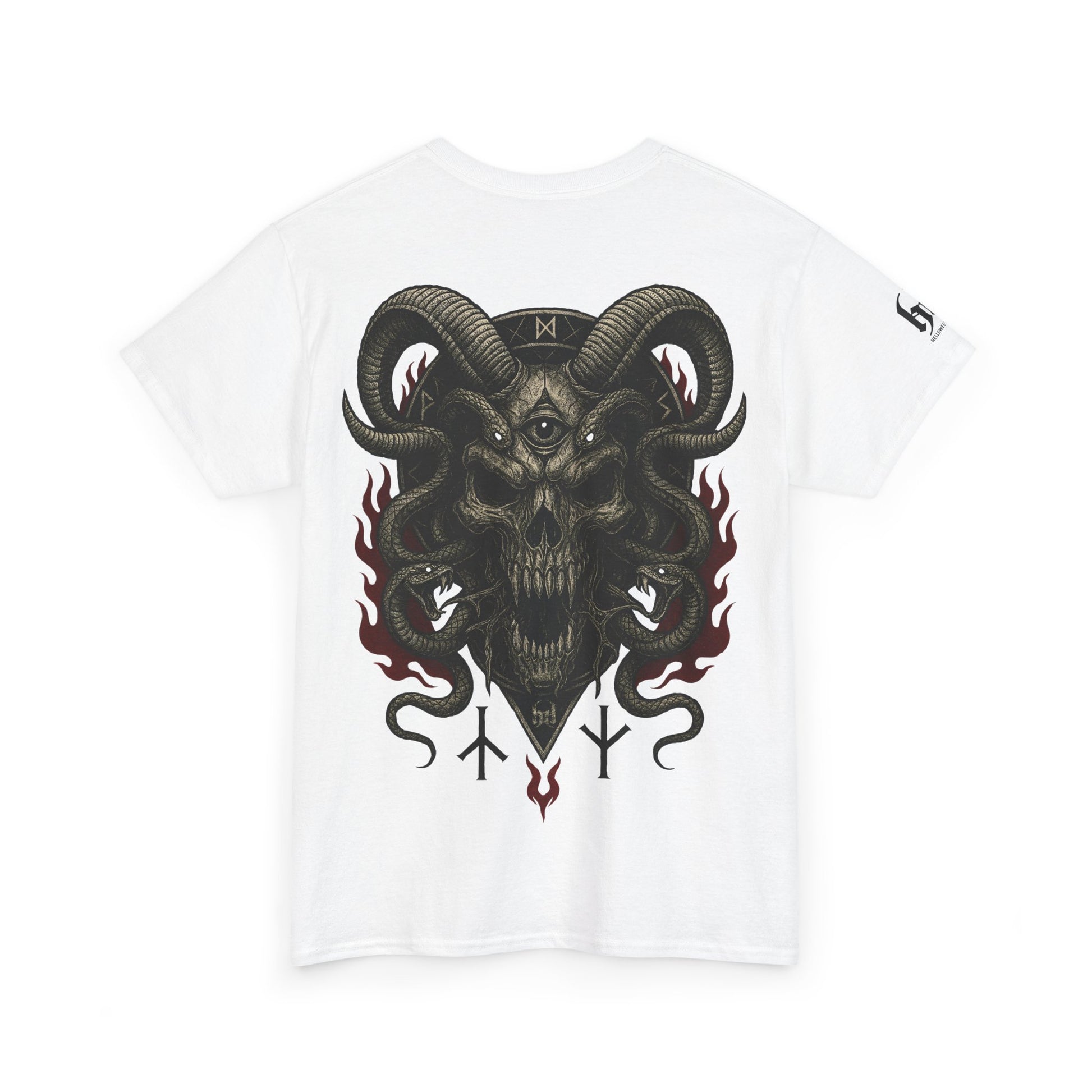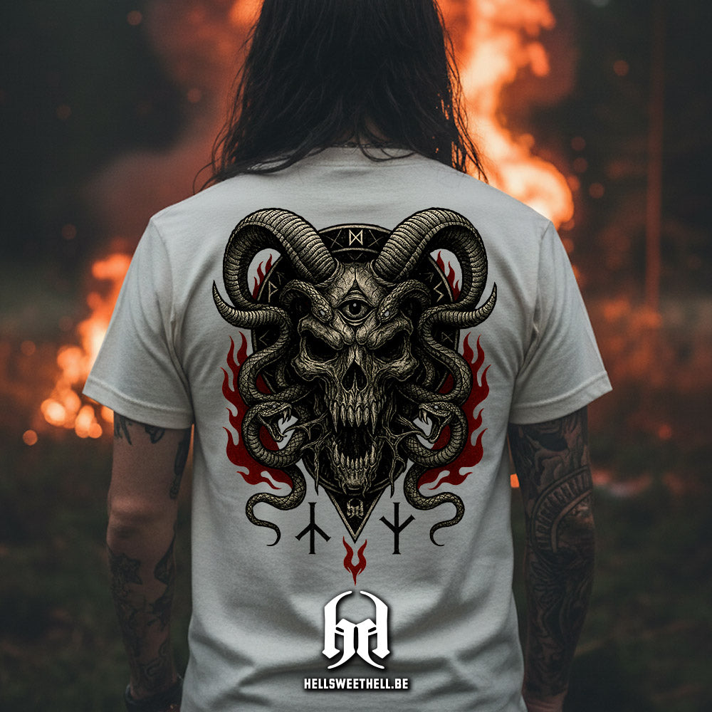 Ce design invoque l’équilibre brutal entre la vie et la mort, la sagesse interdite et le chaos sacré. Un hommage visuel aux forces primaires, à porter avec puissance.