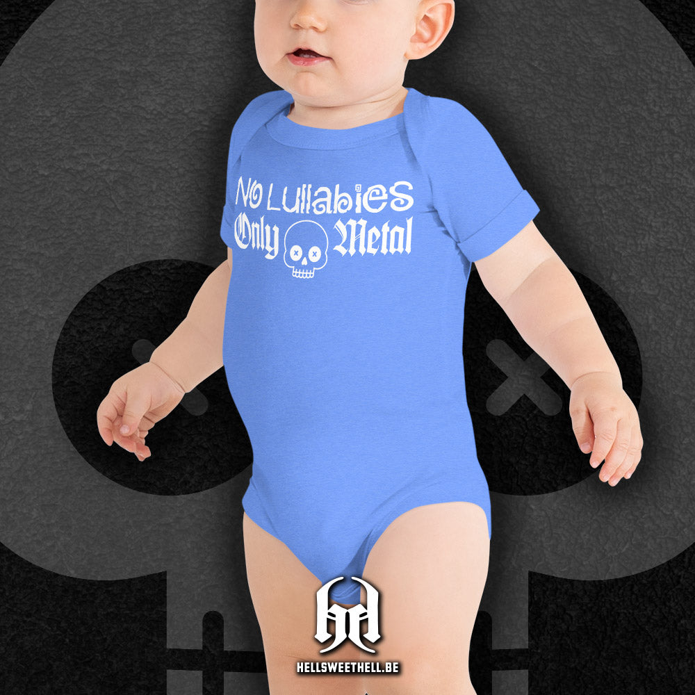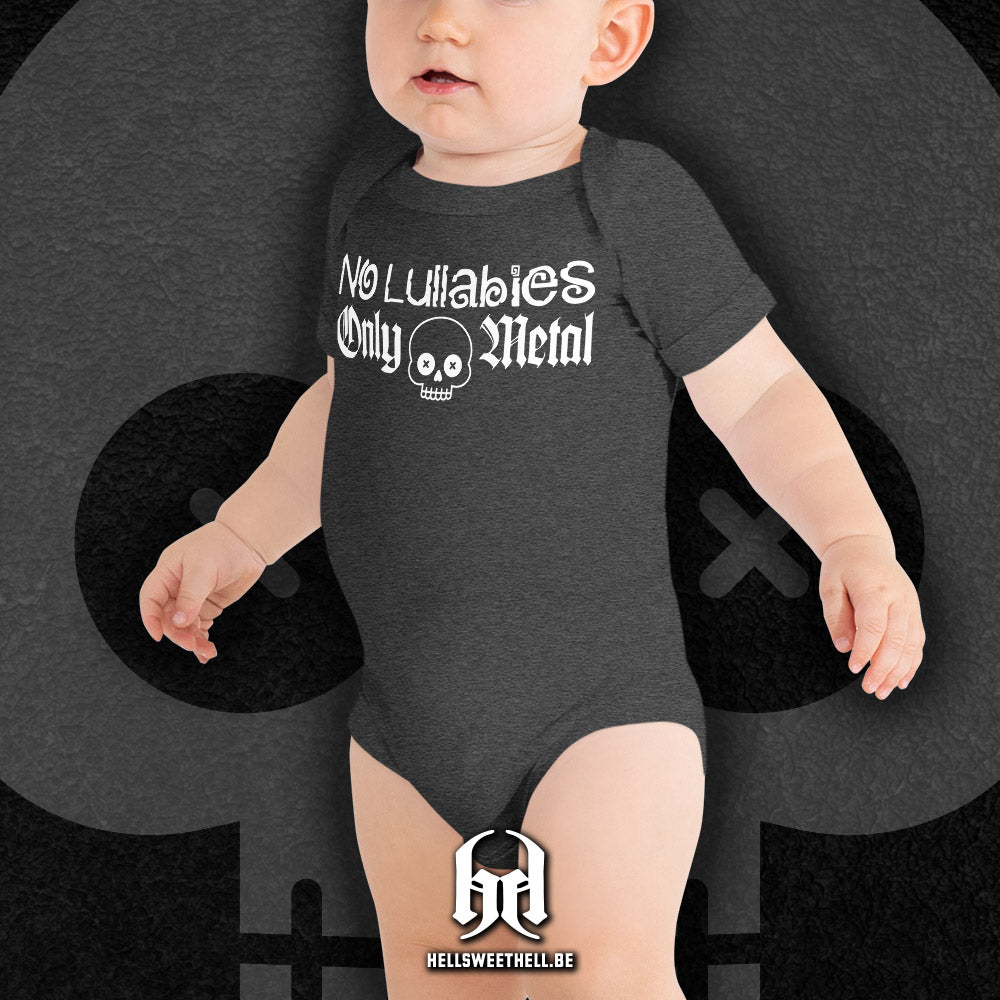Notre body unisexe à manches courtes pour bébé et enfant représente texte "No Lullabies, Only Metal" ("Pas de berceuses, que du Metal !) associé à un petit squelette tout mignon. Ce body unisexe à manches courtes pour bébé et enfant assure un confort optimal tout au long de la journée. Sa coupe unisexe s'adapte parfaitement à tous les genres, offrant une allure décontractée et tendance. Un cadeau idéal pour vous, votre famille ou vos amis !