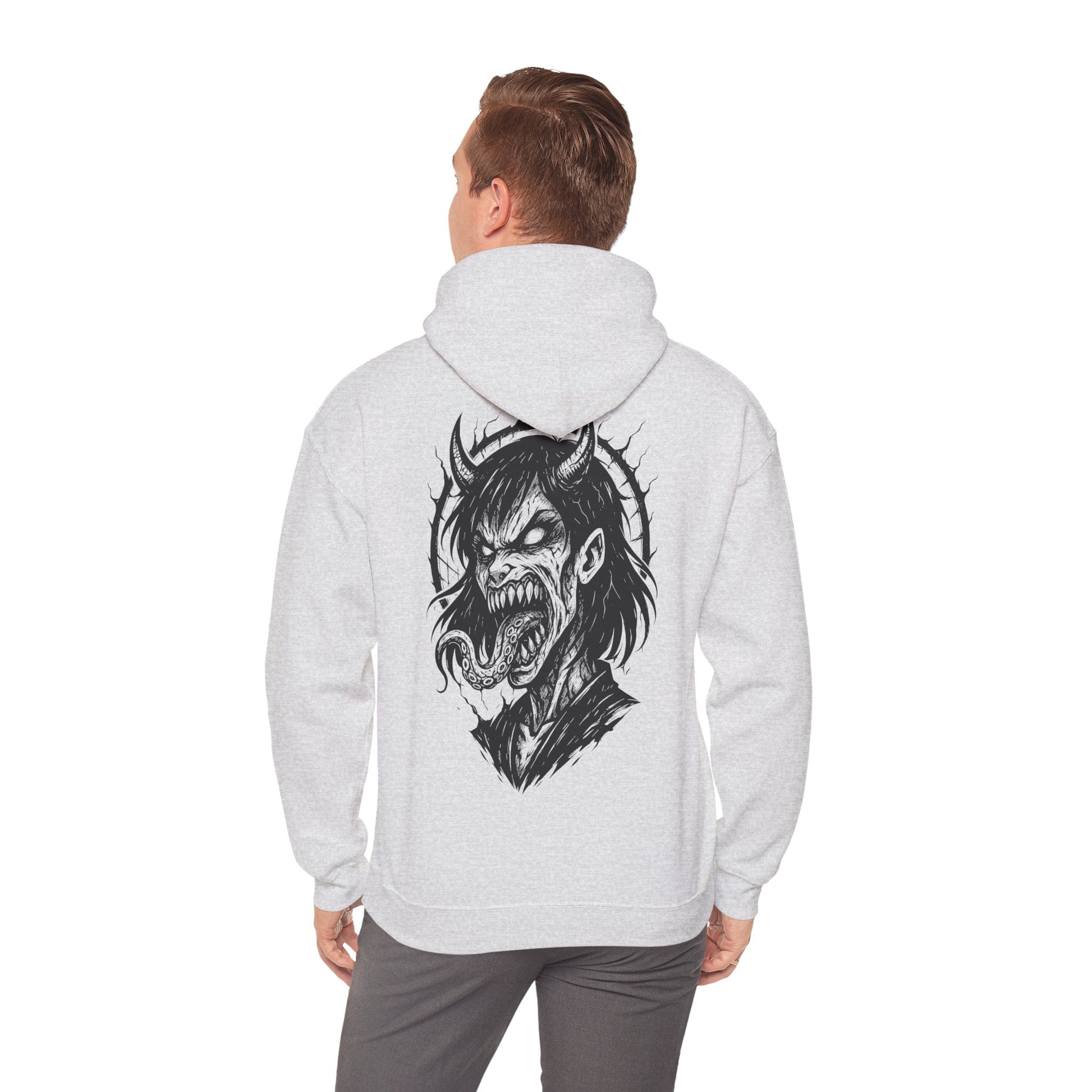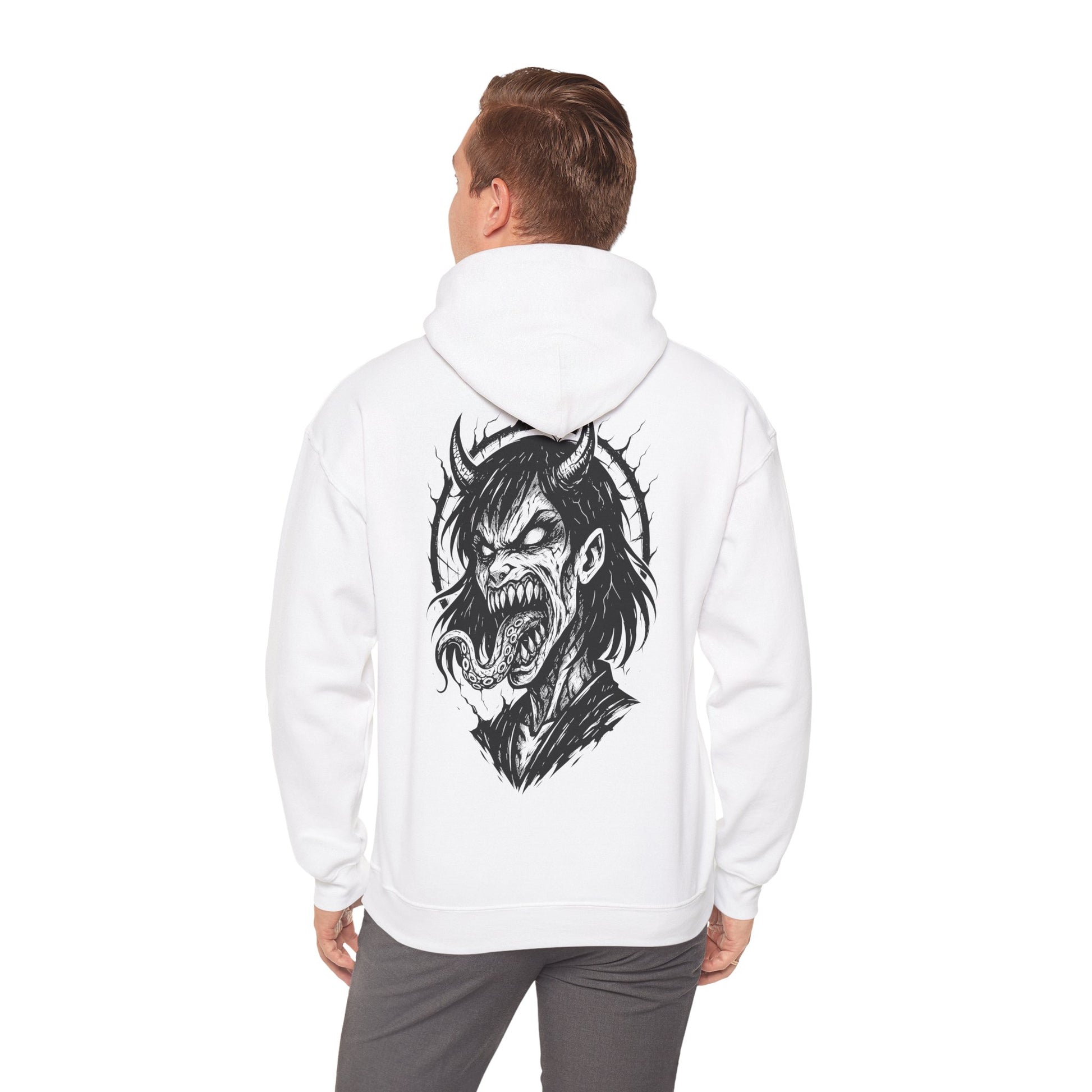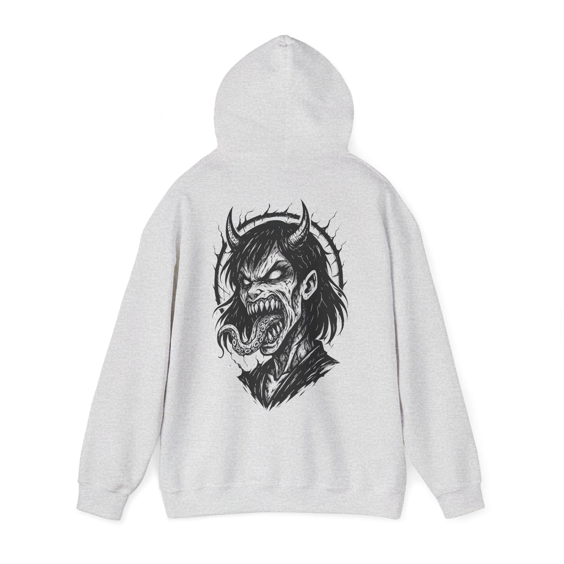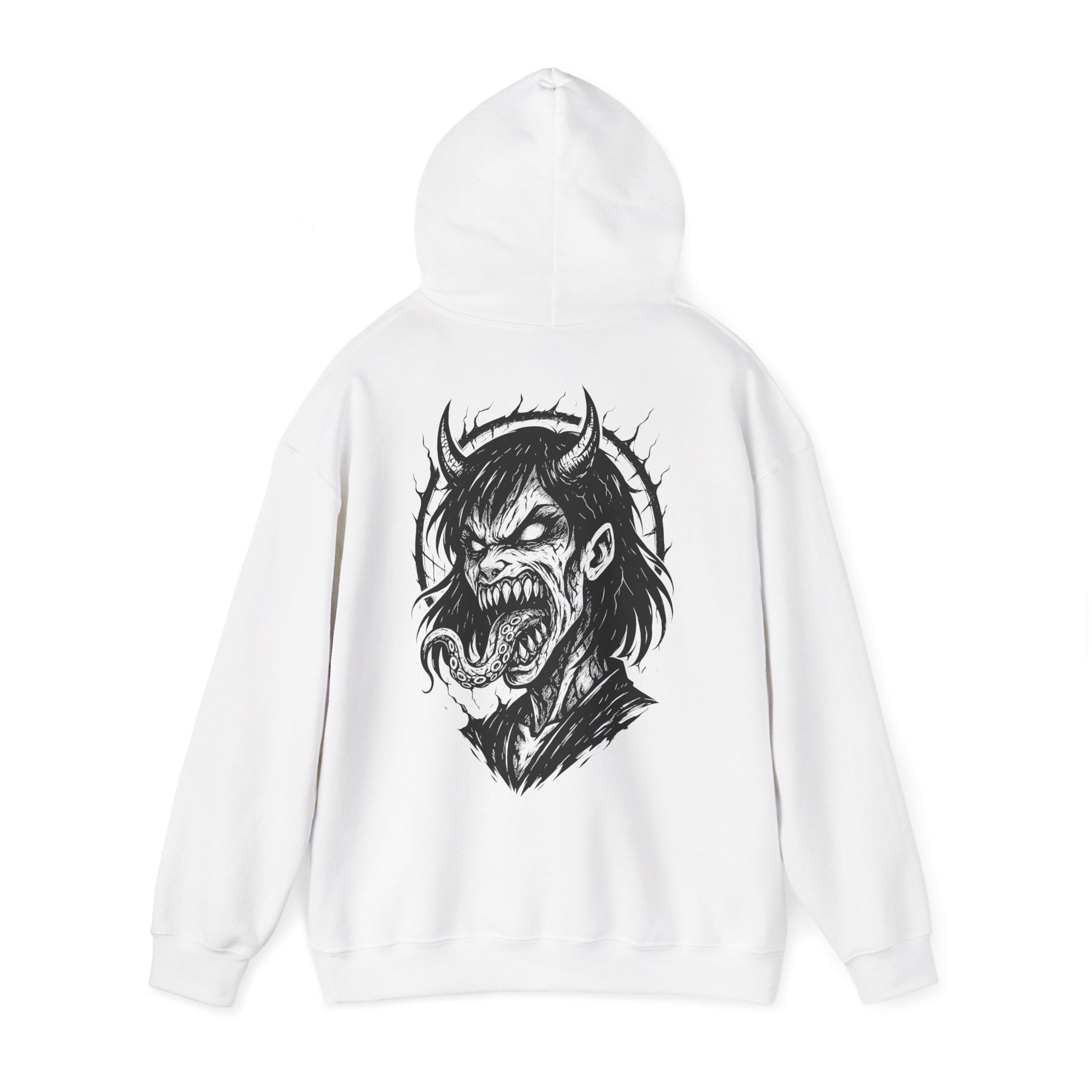Plonge dans les profondeurs de la folie avec Possessed, un design brutal et viscéral pour les âmes tourmentées. Mi-humaine, mi-démon, cette créature aux yeux vides et à la langue tentaculaire semble hurler une douleur venue d'ailleurs. Illustré en noir et blanc avec une intensité tranchante, ce visuel incarne la fusion du surnaturel et de la rage intérieure.
