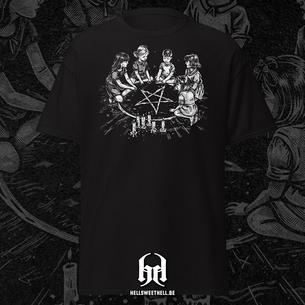 Sous un ciel étoilé, des enfants réunis participent à un rituel aux accents interdits. L’ambiance est à la fois inquiétante et fascinante, entre tradition et transgression. Un design intrigant, parfait pour ceux qui apprécient les scènes ésotériques.
