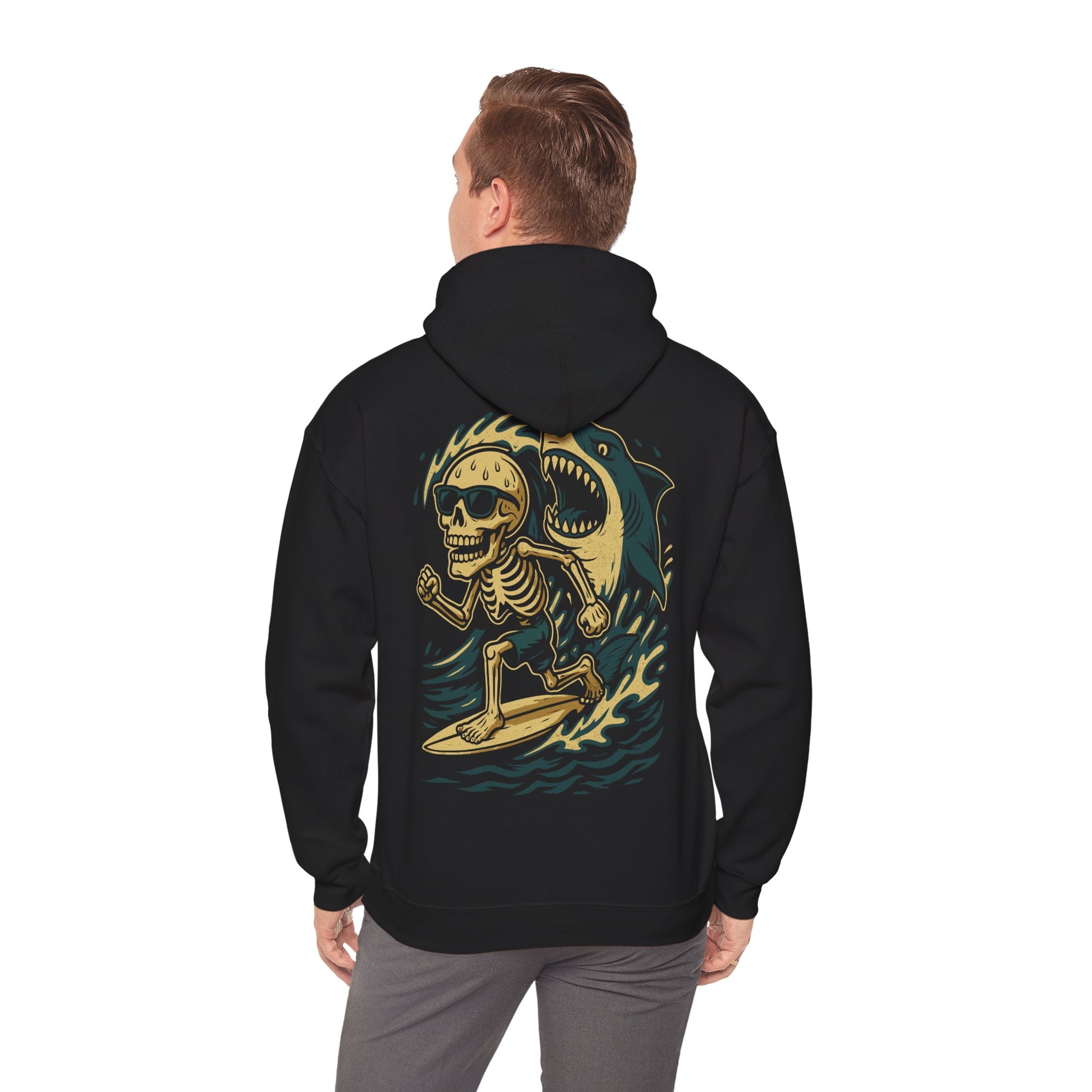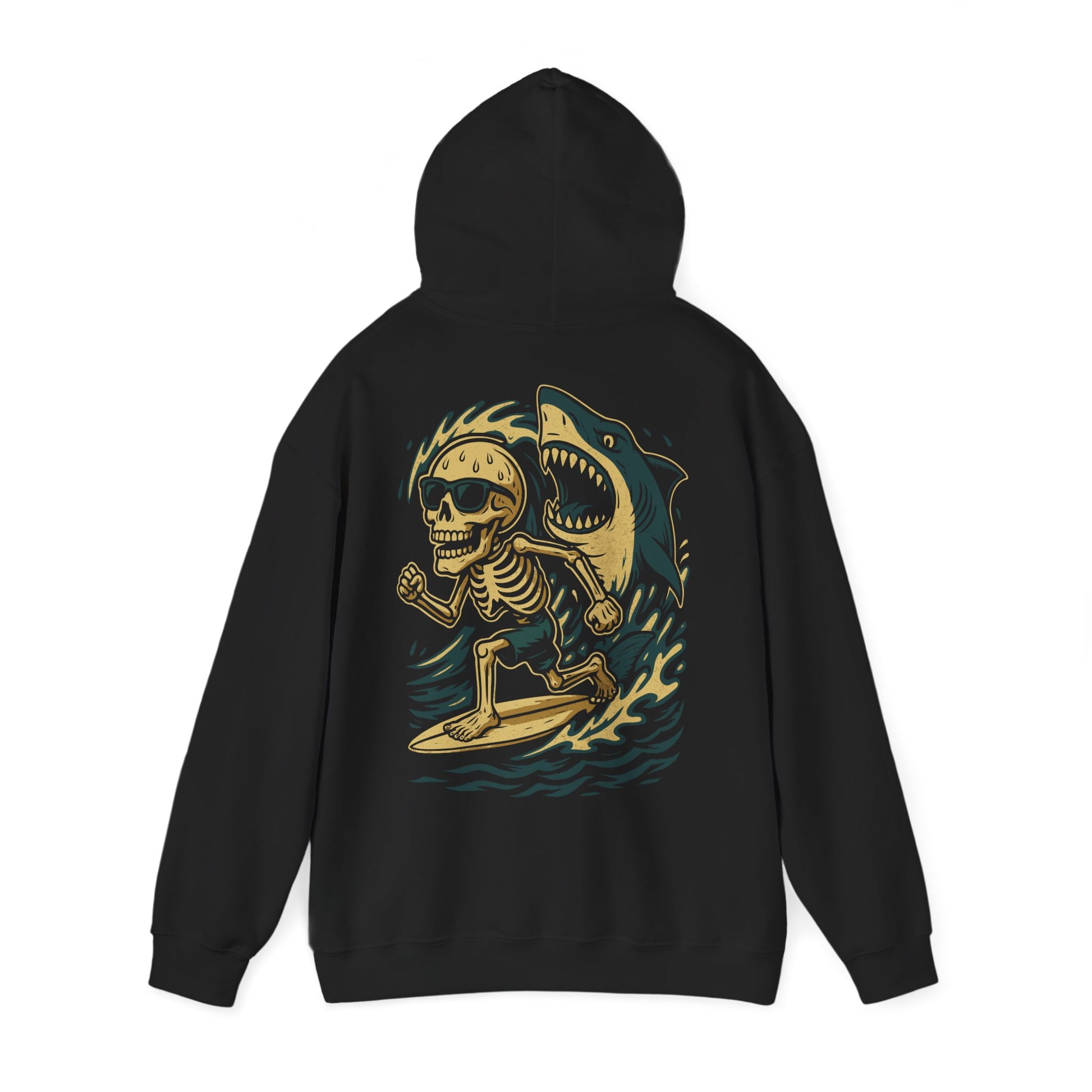Prêt à rider jusqu’à la mort ? Avec le hoodie « Sea You In Hell », l’été prend une allure de course-poursuite épique entre ton squelette badass et un requin affamé. Graphisme old school, vibes surf punk et second degré : un must-have pour les fans d’océan, de rock alternatif et de style underground.