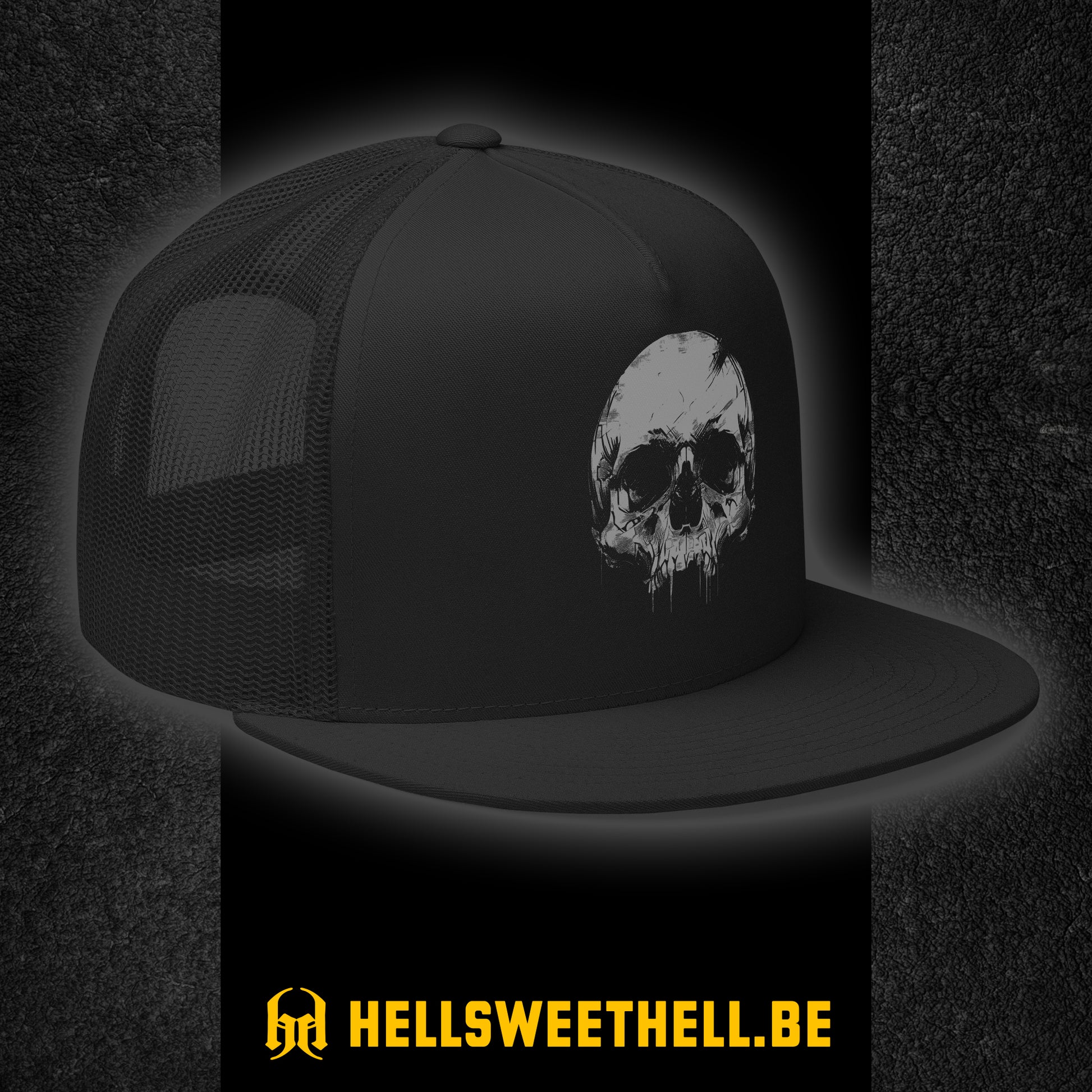 Casquette trucker au style classique incluant une impression représentant un crâne