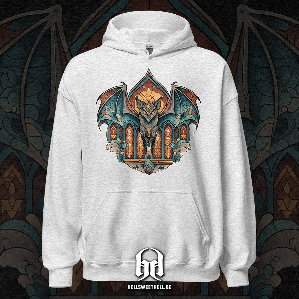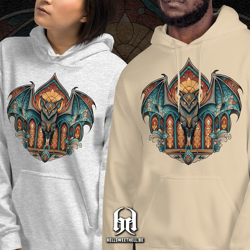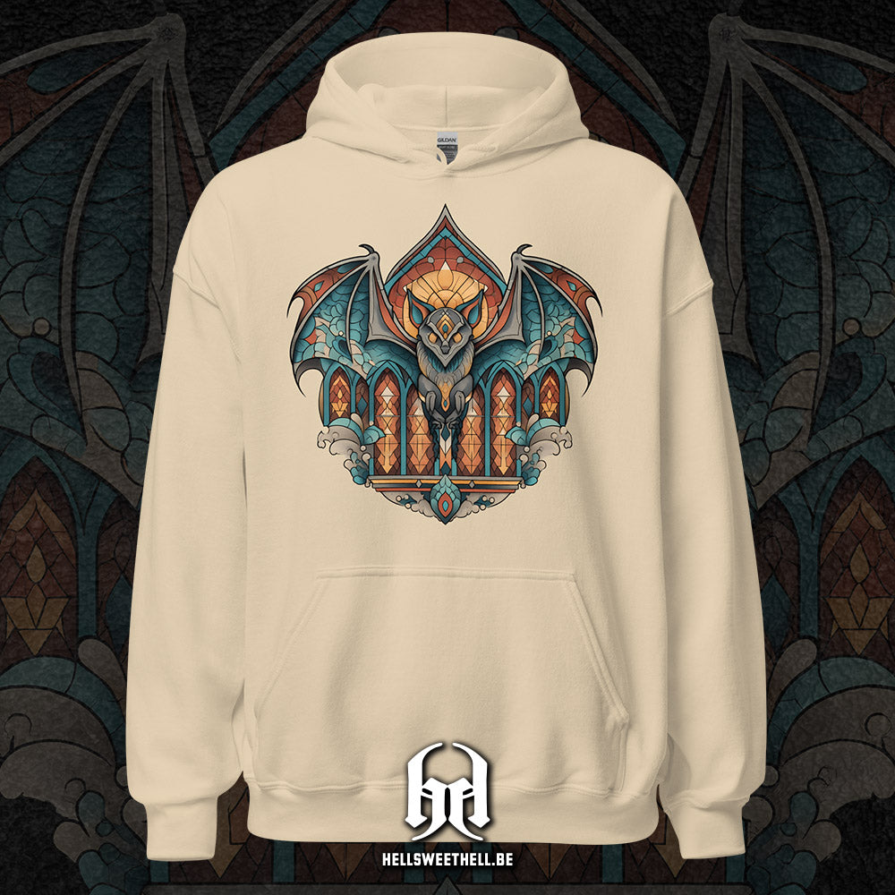 Inspiré des vitraux d’églises anciennes, ce motif met en scène une chauve-souris stylisée, entre sacré détourné et poésie nocturne. Une composition qui capture la beauté du sombre, pour celles et ceux qui trouvent leur lumière dans l’ombre.