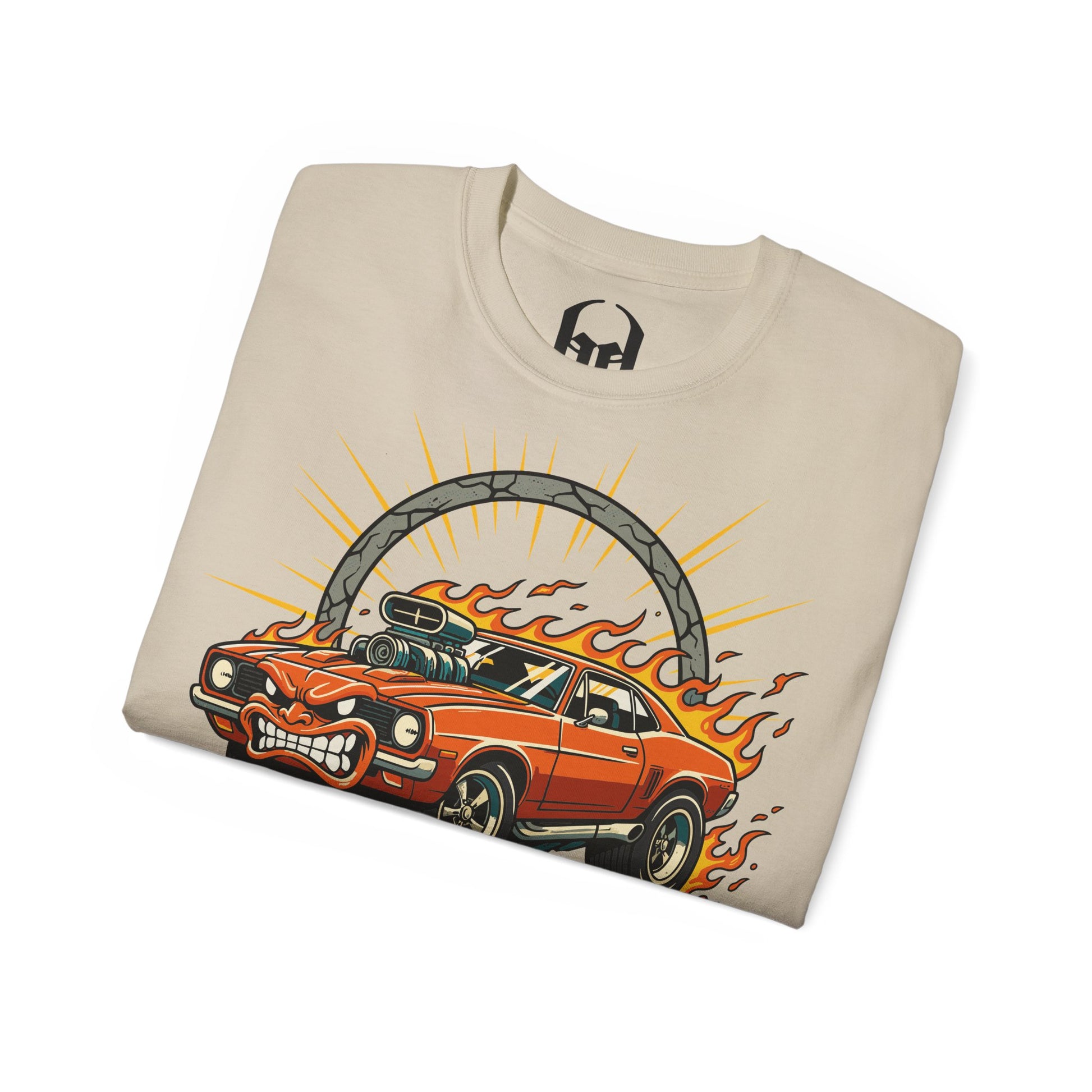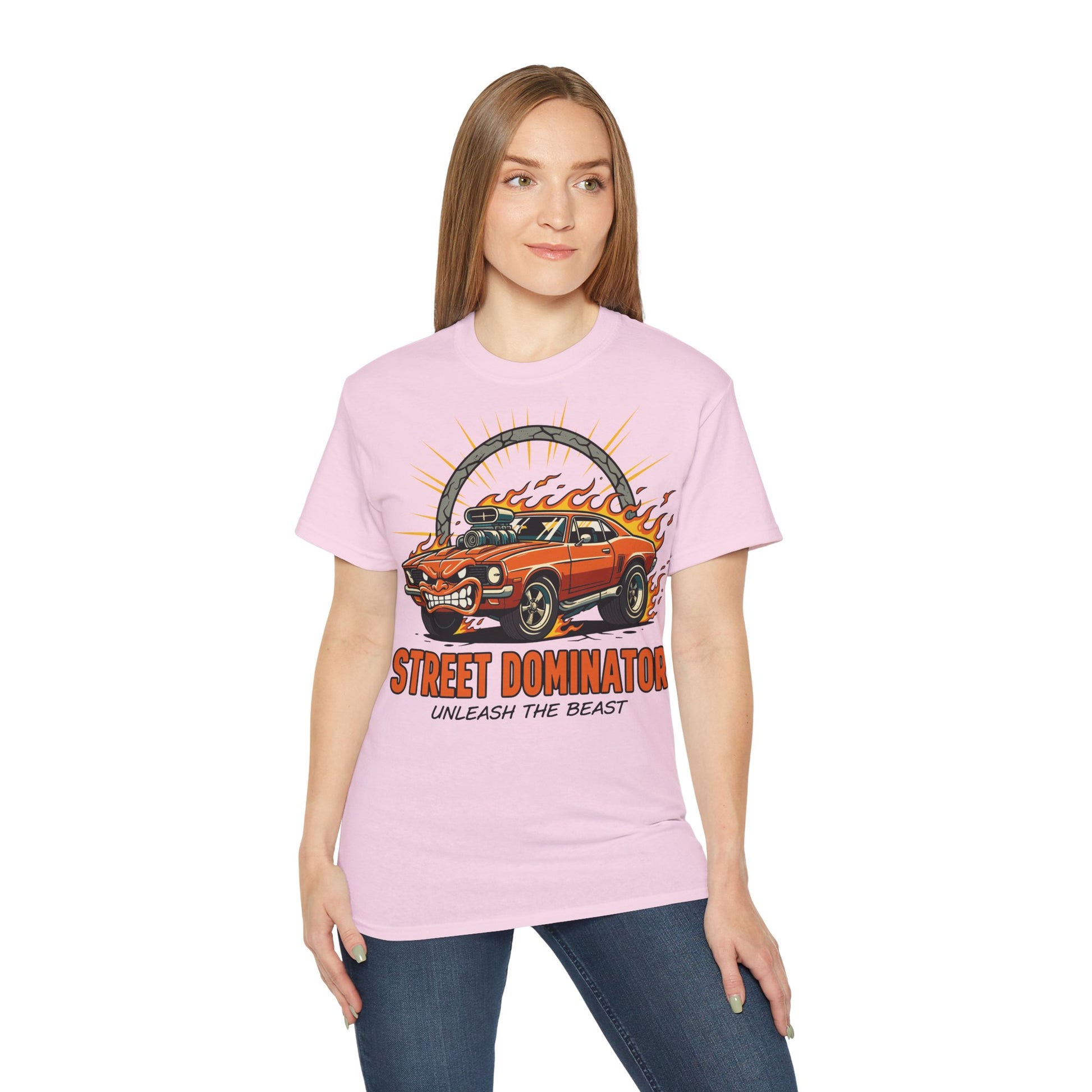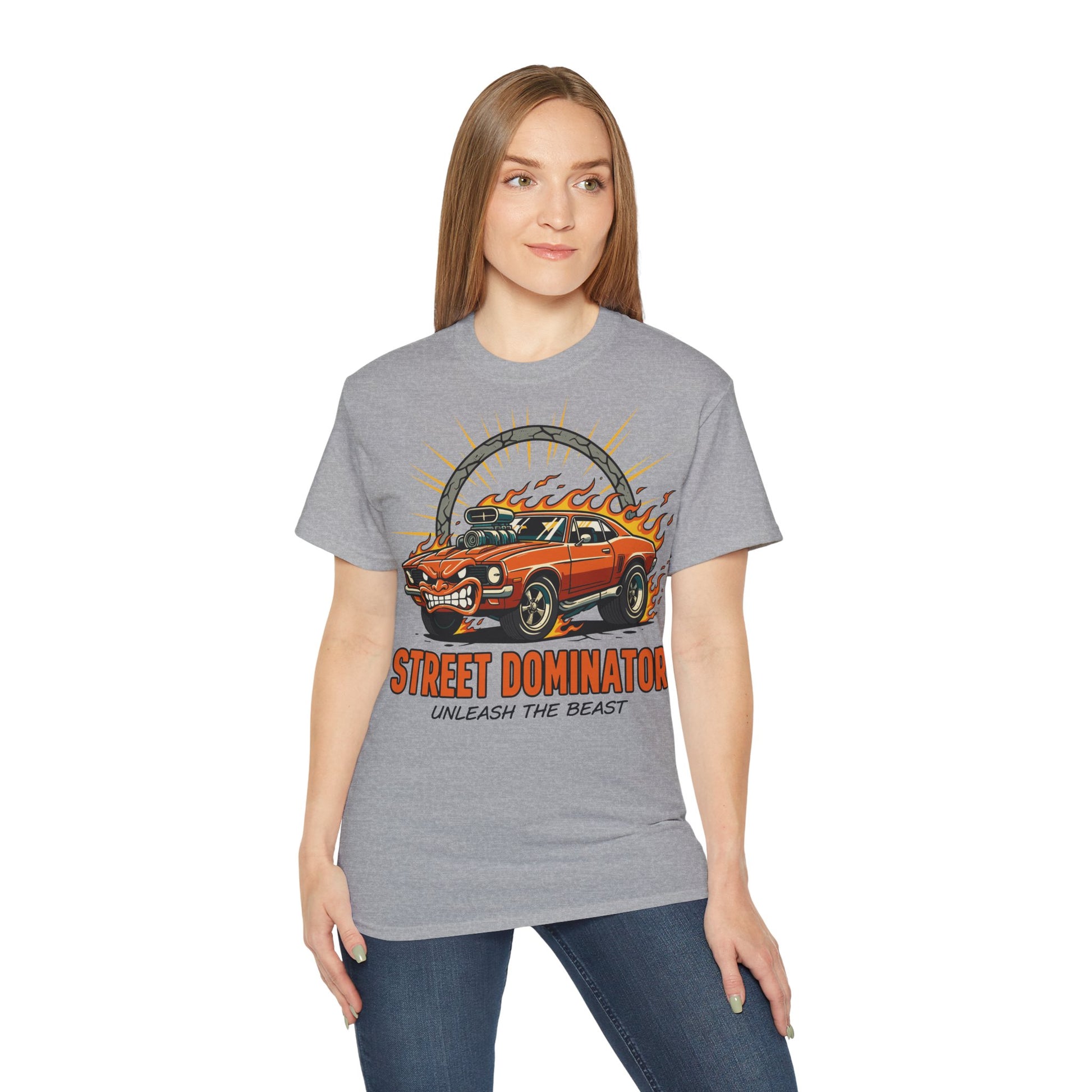 Pas de règles. Pas de limites. Juste de la gomme cramée, des flammes, et une bagnole prête à dévorer le bitume. Street Dominator, c’est la fusion entre moteur surboosté, rage pure et esthétique cartoon badass. Un clin d'œil à la culture hot rod, aux runs nocturnes illégaux et aux caisses qui hurlent plus fort que la loi. Tu veux dominer la rue ? Commence par porter le bon matos.