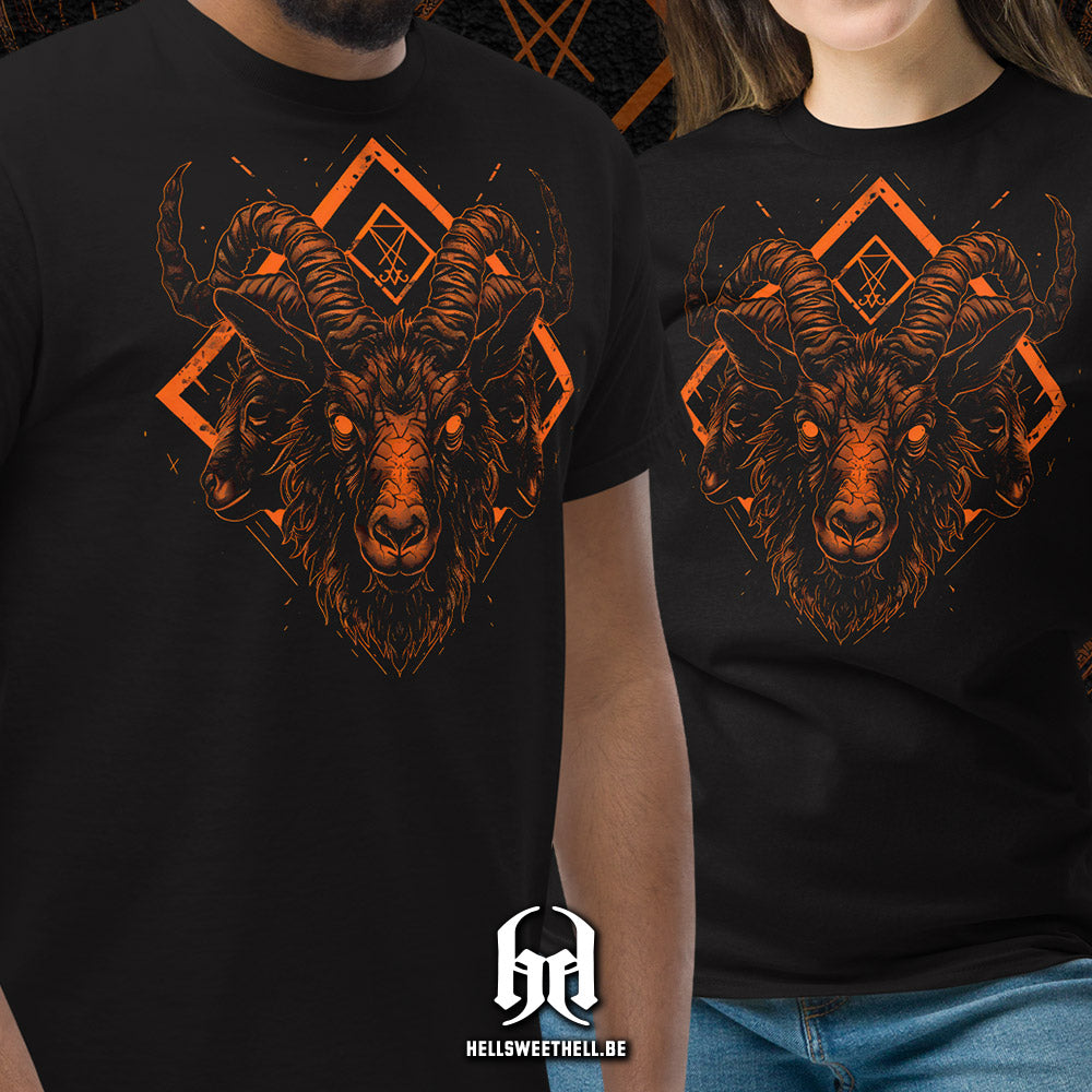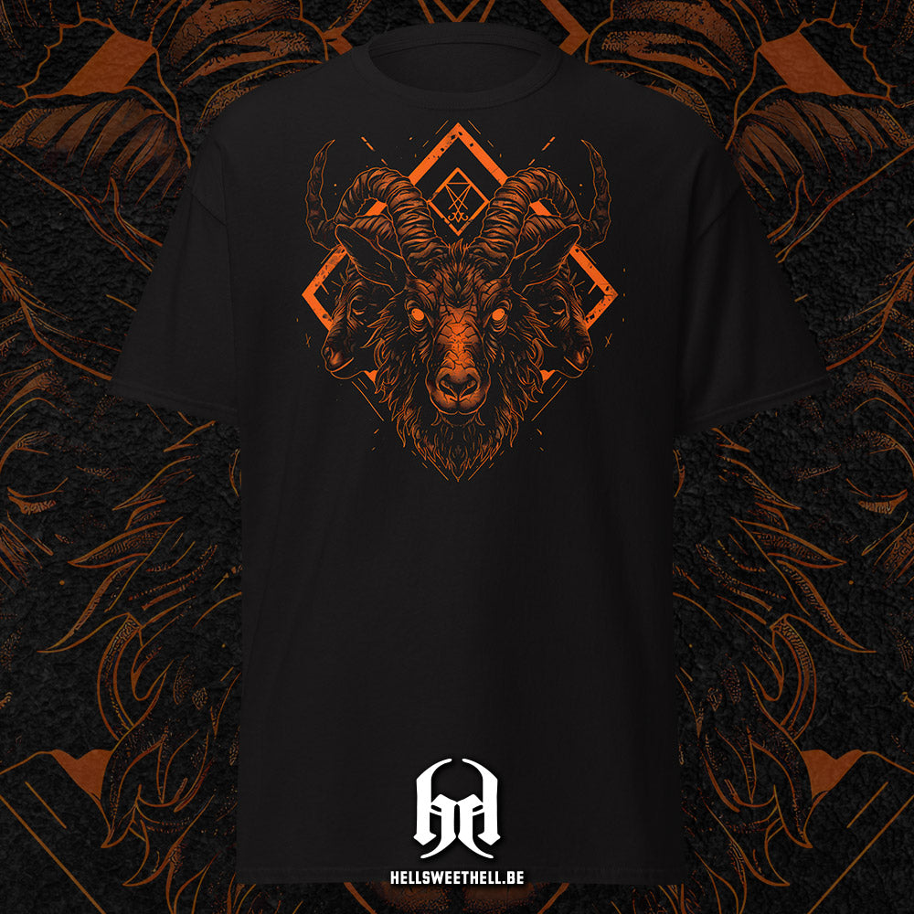 Ce design imposant met en scène trois têtes de boucs, symboles ancestraux de puissance et de transgression. Imprégné d’une esthétique sombre et mystique, il évoque les rites occultes et l’ésotérisme interdit. Un incontournable pour les amateurs d’art sombre et de symbolisme infernal.