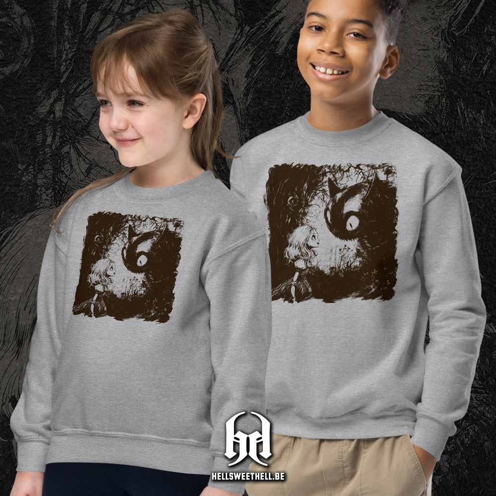 Plongez dans un univers féerique inspiré d'Alice au Pays des Merveilles avec ce sweat-shirt unique. Confortable et cool, ce sweat à col ras du cou pour jeunes est conçu pour toutes les aventures. Fabriqué en polaire douce, il est facile à porter et à laver.